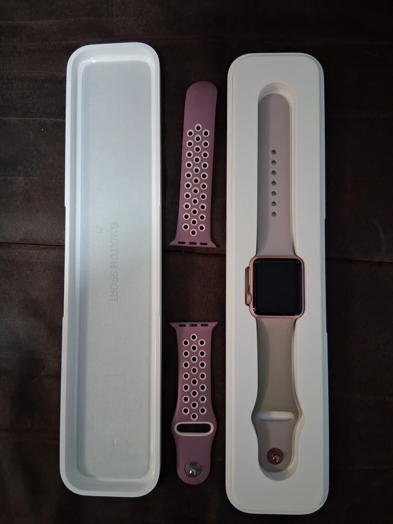 Selling an Apple Watch Sport, complete with its original box. It also comes with an additional band for some extra style! The charger is included as well.
