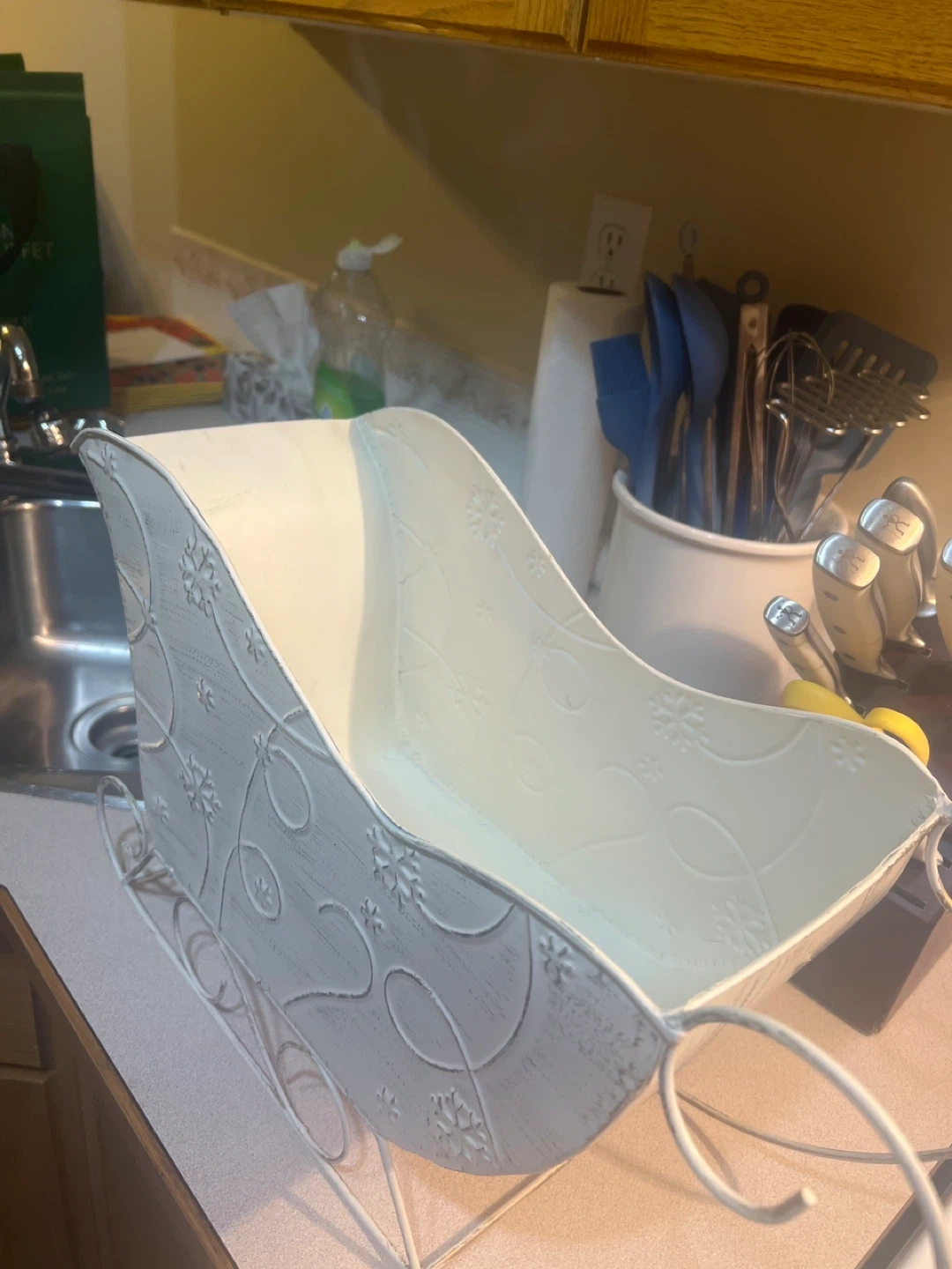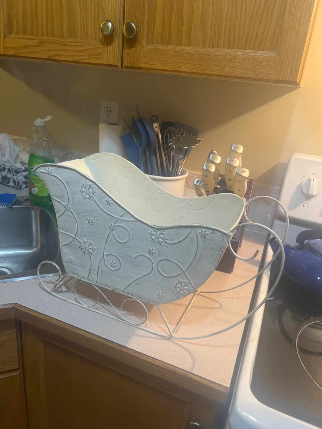 Giving away a cute decorative metal sleigh! It has a pretty snowflake design and would be perfect for holiday decor or as a unique centerpiece. It's in great shape and ready to add some charm to your home