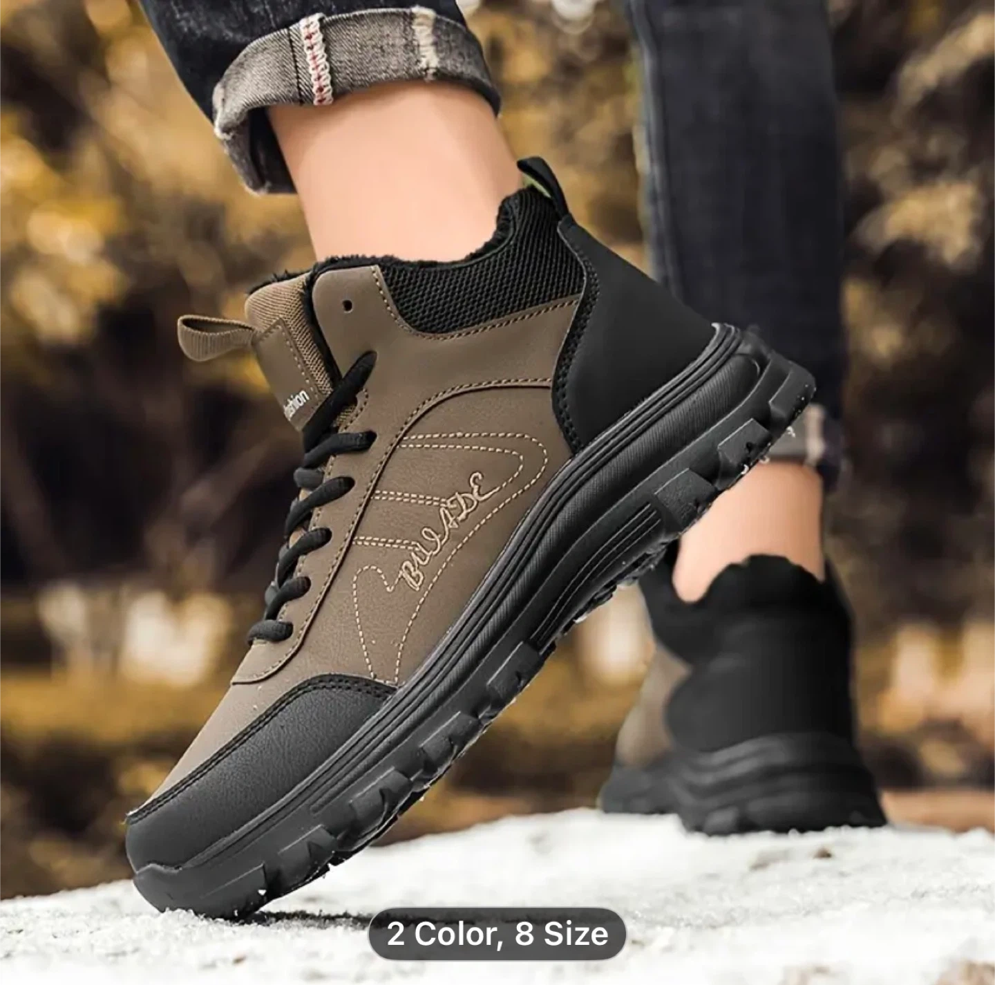 Men's Winter Thickened Padded Snow Boots, Mid-Top Casual Sports Shoes, Warm Outdoor Lightweight Anti Slip Travel Walking Hiking Men' Quality Boat. 9.5/42 - 10/43 sizes