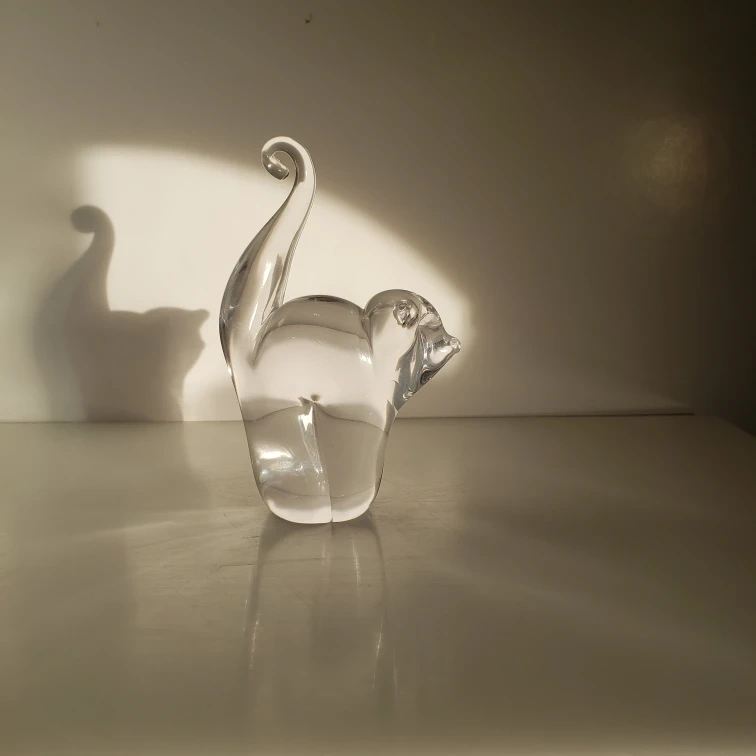 Here's a beautiful crystal glass cat sculpture by Chalet. . It's in great condition and would look lovely in any home!