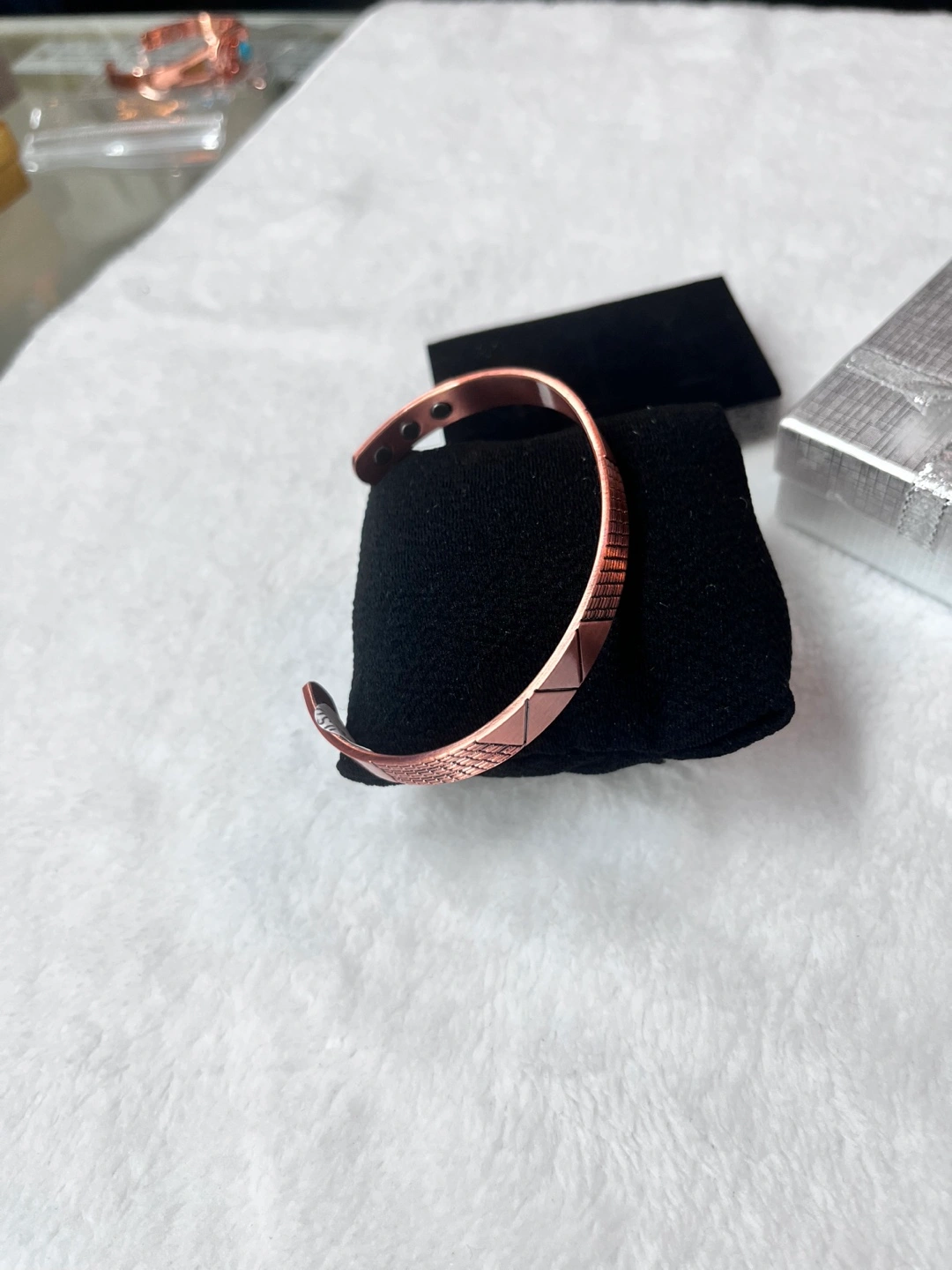 Selling a copper Cobre magnetic bracelet that comes with its original box and a small black velvet pillow. It's a stylish accessory with potential health benefits. Check out the pictures! Brasalete de Cobre