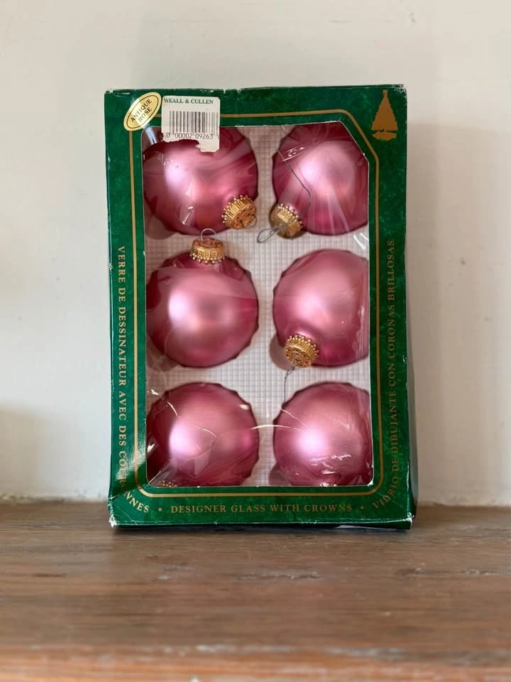 Krebs glass ornaments vintage pink rose gold matte satin blown glass Christmas decoration decor 1970s 1980s 1990s traditional elegant