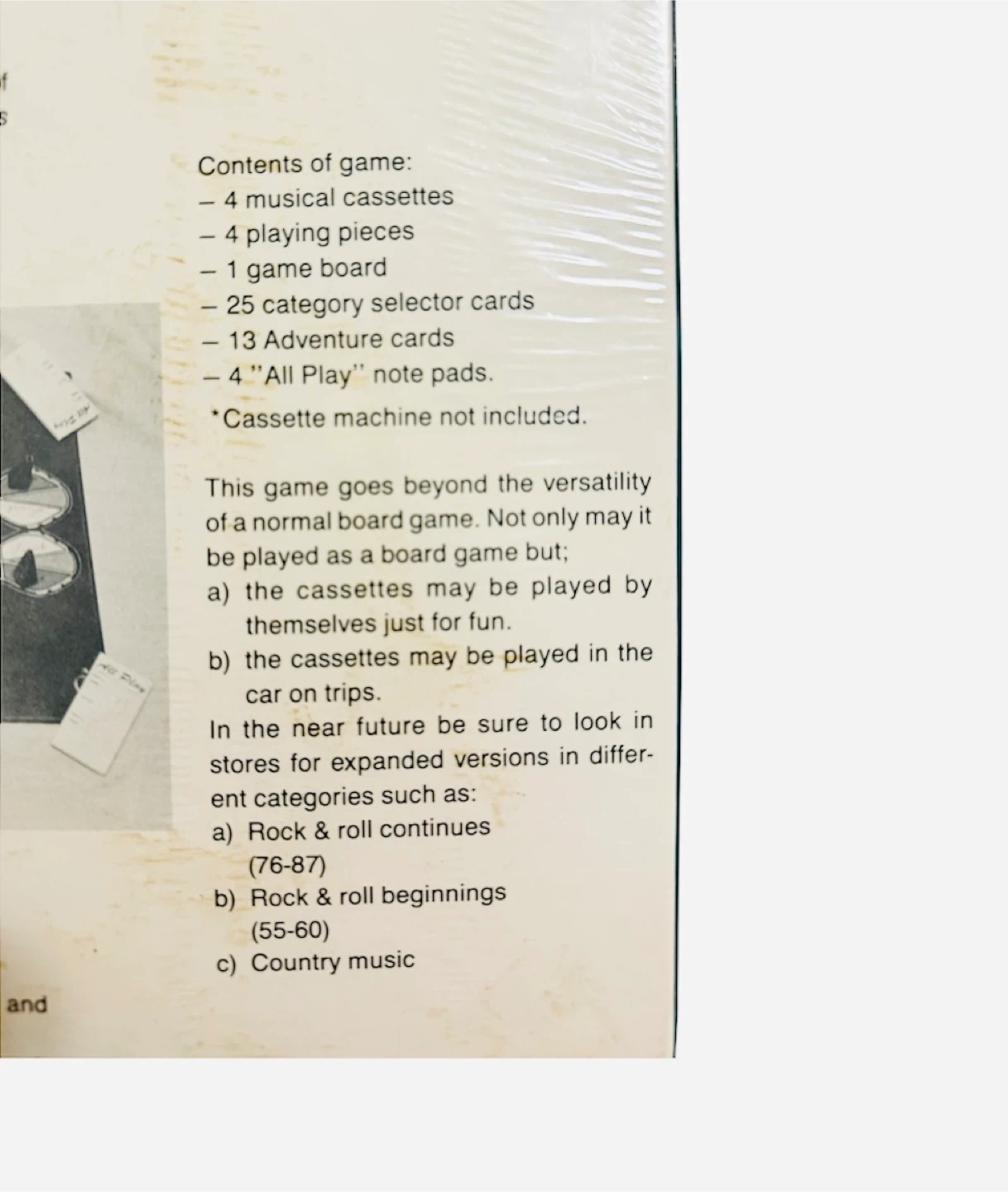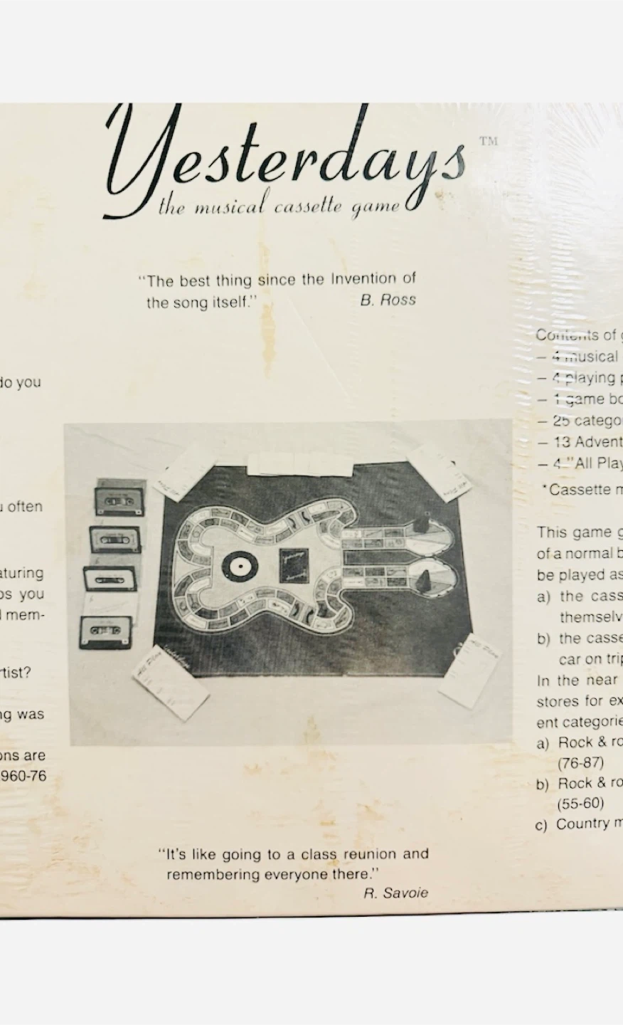 Yesterdays — The Musical Cassette Game (Collector’s Edition) — still brand new & factory sealed. This classic music-themed party game is a blast from the past and a wonderful collectible for anyone who loves nostalgia, vintage games, or retro flair.