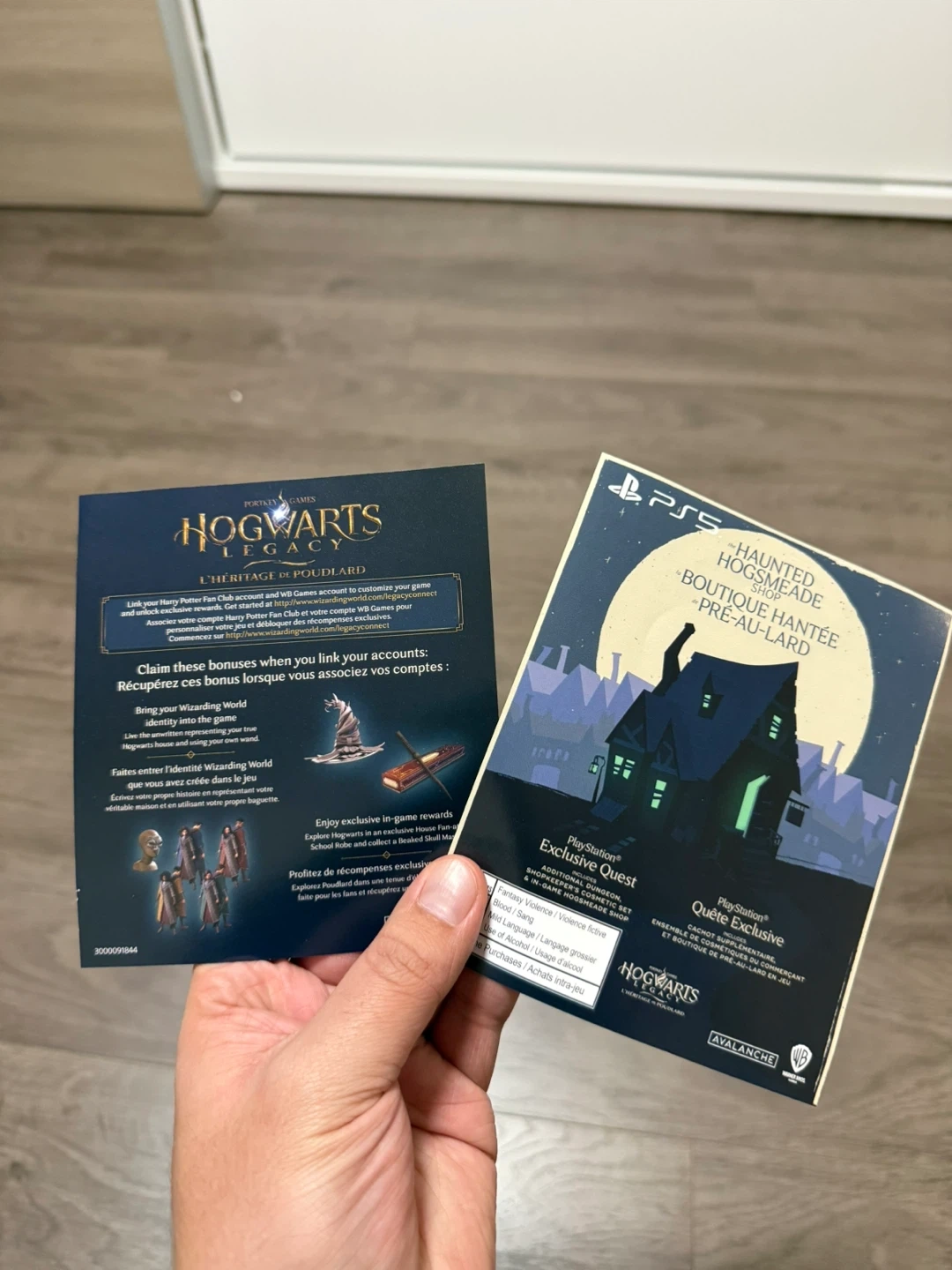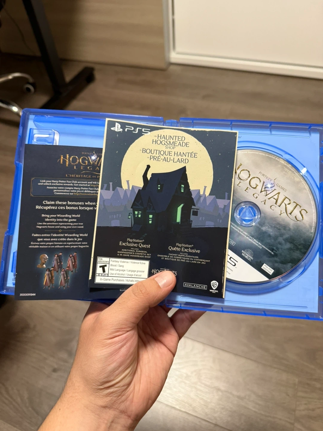 Selling a copy of Hogwarts Legacy for the PS5. It comes with the game disc and the PlayStation Exclusive Quest DLC insert. Enjoy exploring the Wizarding World!