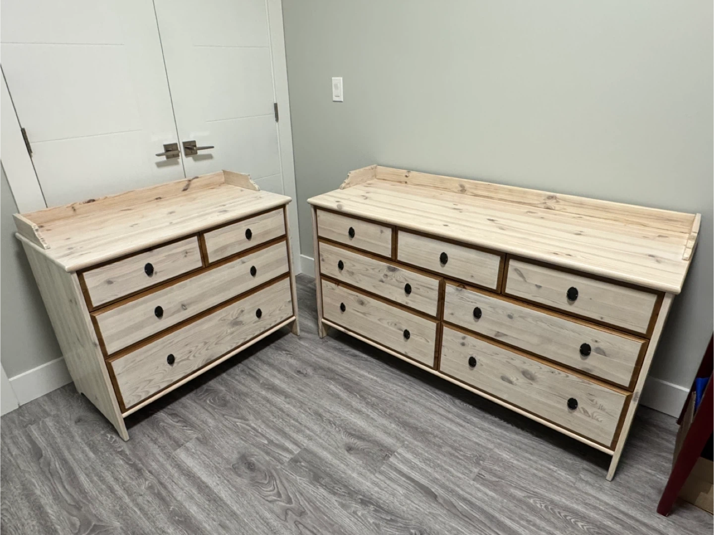 Selling 2 solid wood dressers. The dressers were recently finished so there’s no scratches or dents.