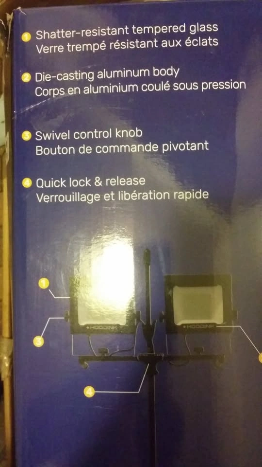 The LED work light boasts several practical features such as shatter resistant tempered glass, Diecasting alumium body, Swivel control knob, Quick lock & release. Each with individual switch on/off. With this professional level work light and the strong tripod covering broad working area, like working under daylight efficiently without missing targets.