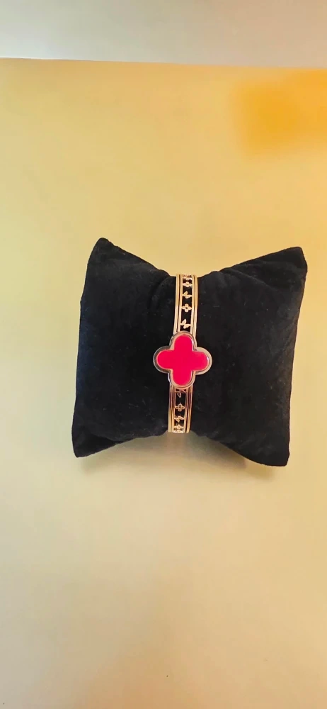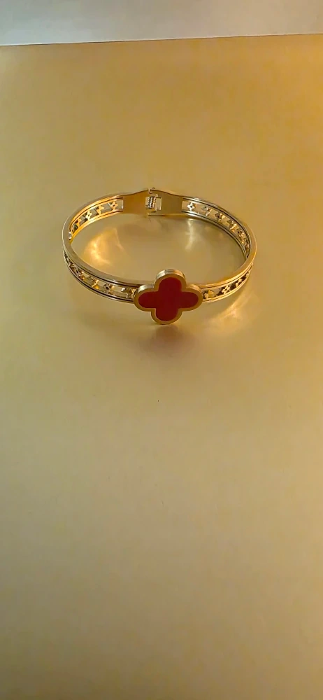 Selling a beautiful clover bangle bracelet. It's gold with a red clover accent. A stylish accessory to add to your collection!