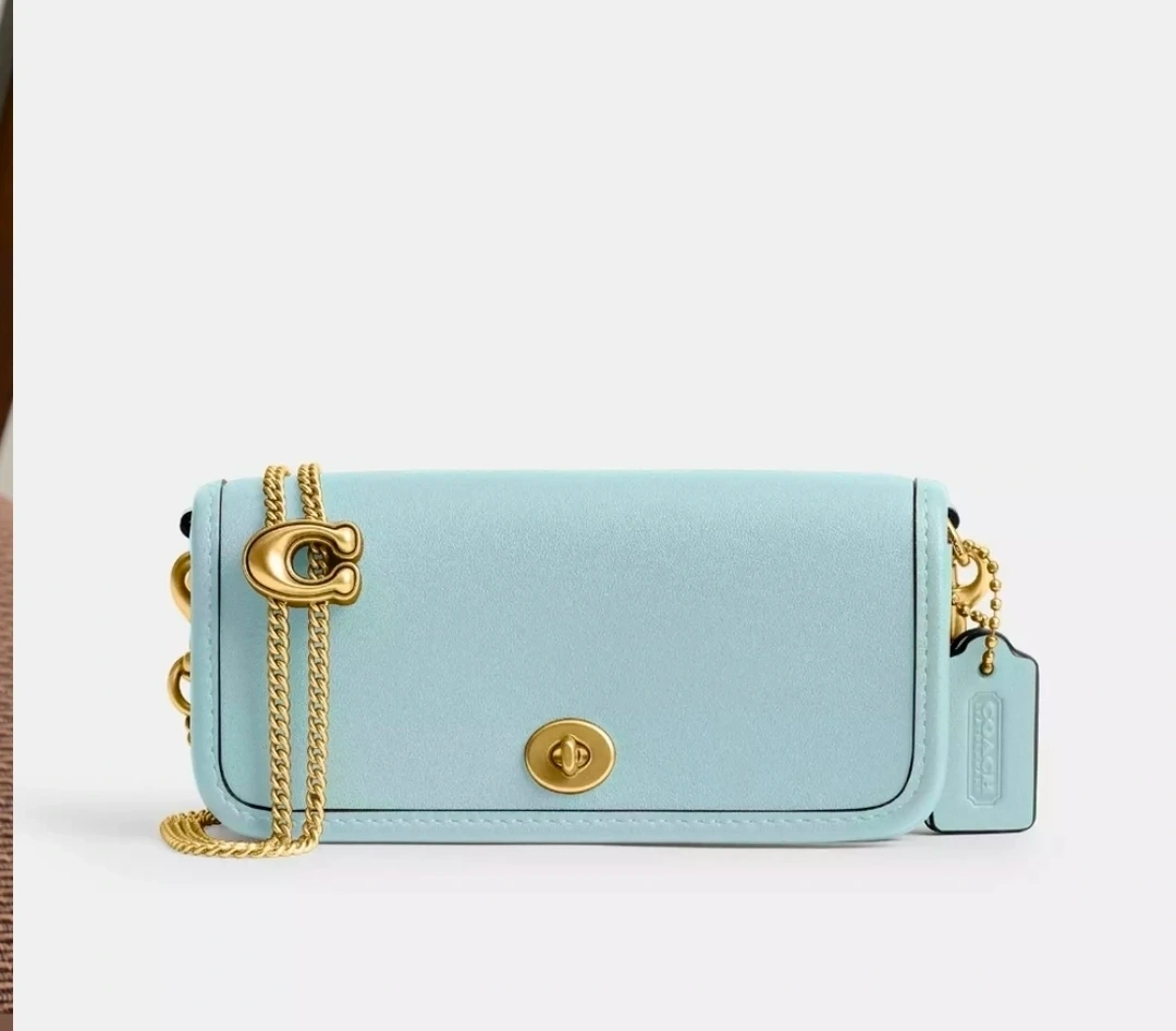 Crafted of glovetanned leather, this petite 14 features an exterior slip pocket and space for ear buds, cash, cards, and small essentials. It's finished with a gleaming chain strap accented with the signature charm slider to wear long or short on the shoulder or crossbody.