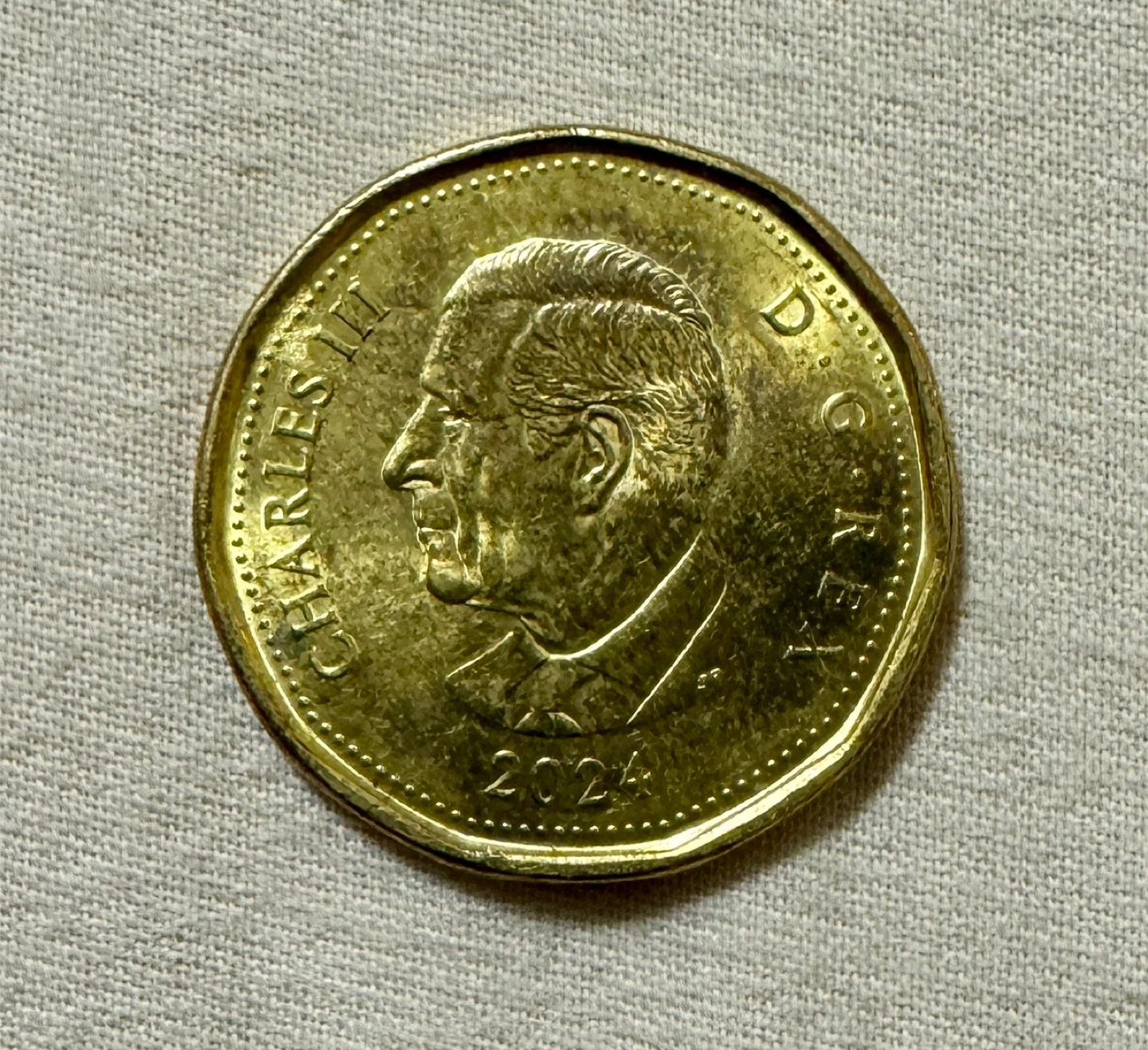 3. New Effigy: The obverse (the side with the King's portrait) features the new Canadian effigy of His Majesty King Charles III, as this coin was among the first Canadian circulation coins to be issued with his likeness.
