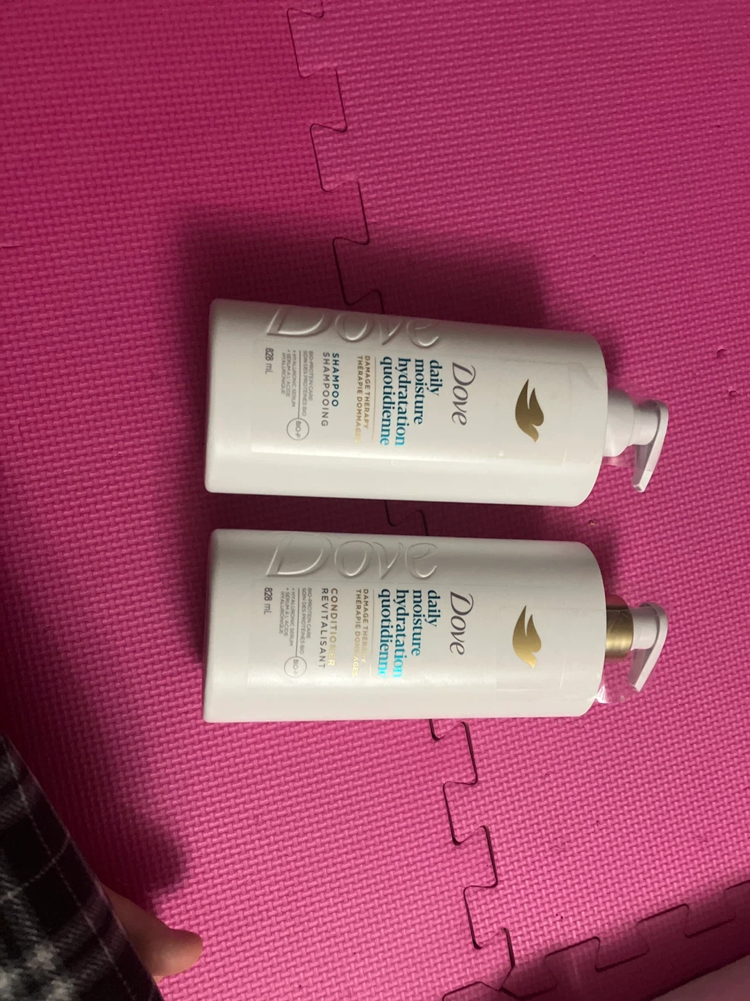 Selling a set of Dove Daily Moisture shampoo and conditioner. Each bottle contains 828 ml. Perfect for daily use and damage repair!