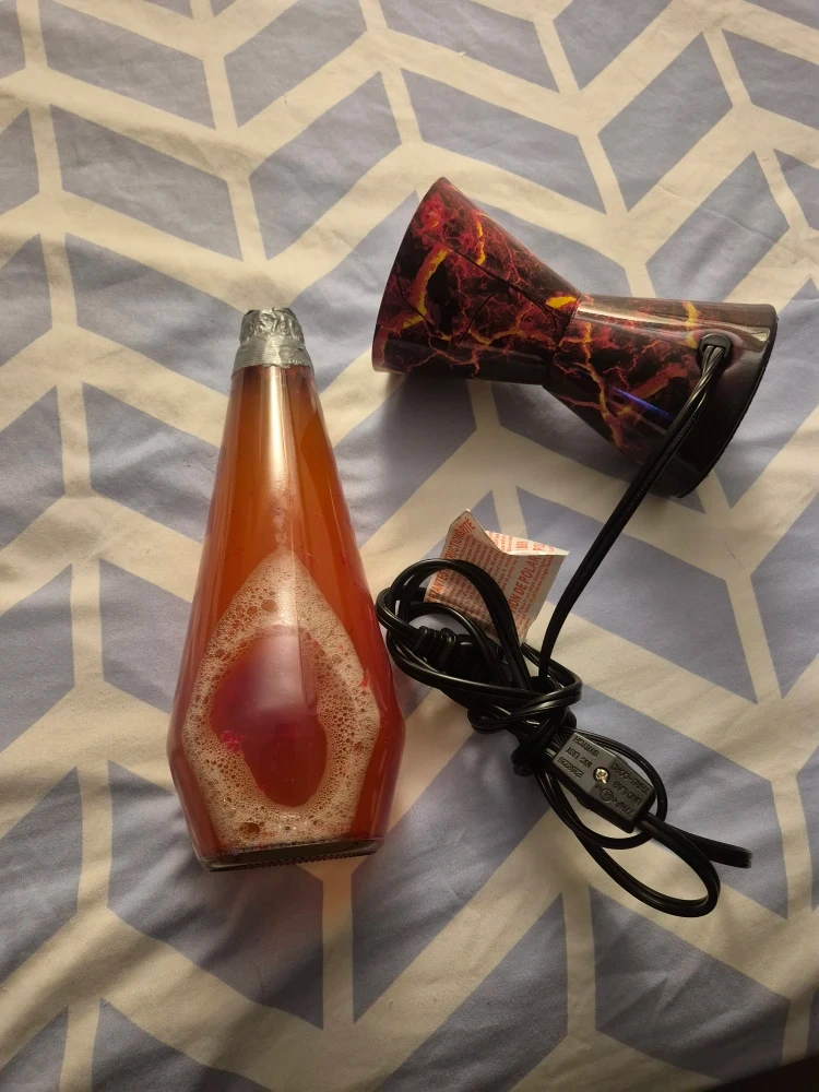 Selling a Lava Lamp 2149, it's a 14.5-inch model with a decal Colormax Volcano design! It's made of aluminum and weighs about 3.04 pounds. This lamp would look great in any room!.