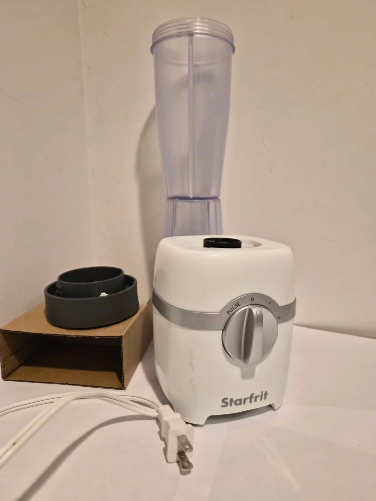 Selling a Starfrit personal size blender! It's used and comes with everything except the lids. On pick up it will be in a box