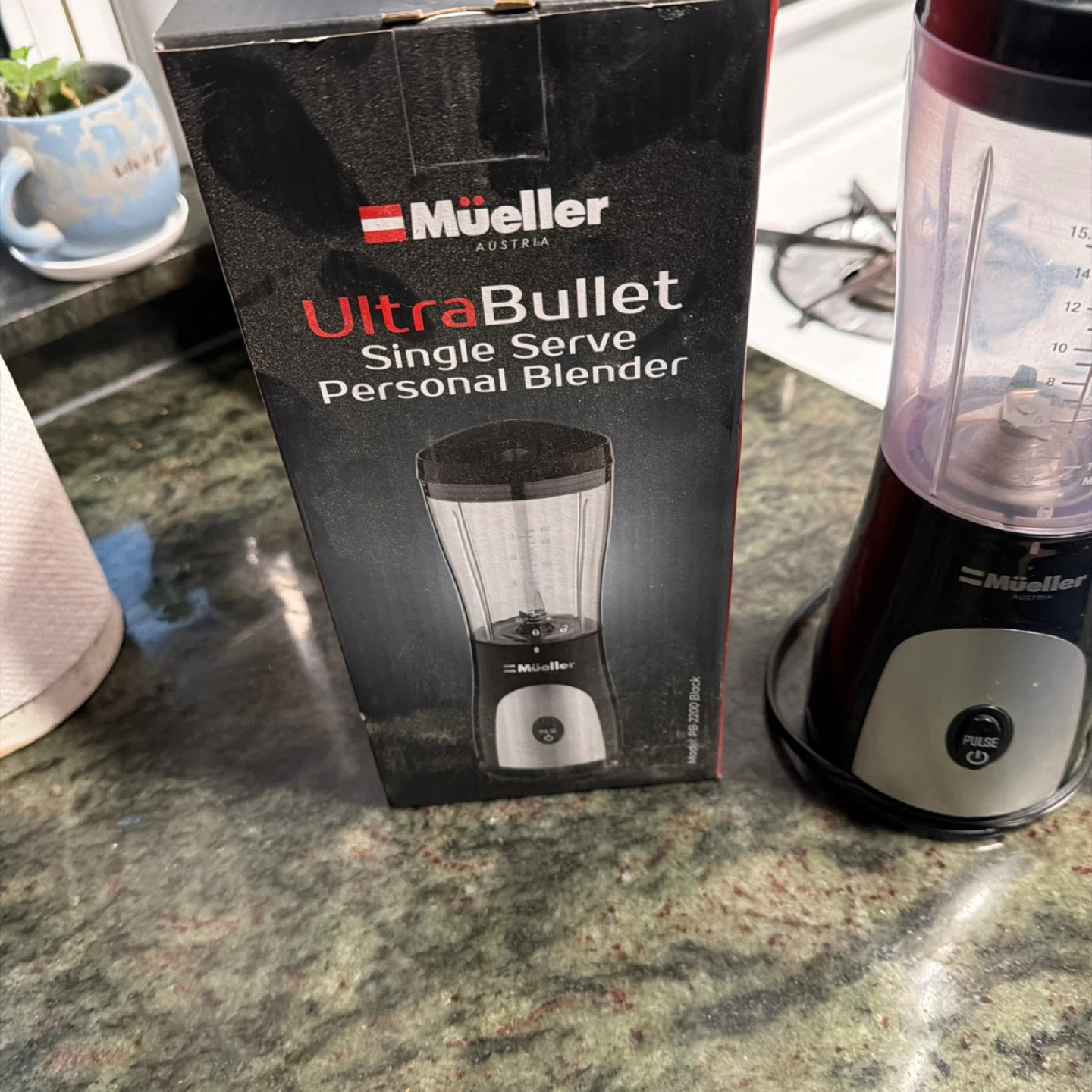 Selling a Mueller Austria UltraBullet Single Serve Personal Blender. It's in good condition and comes with the box. This blender is perfect for making smoothies and shakes for one