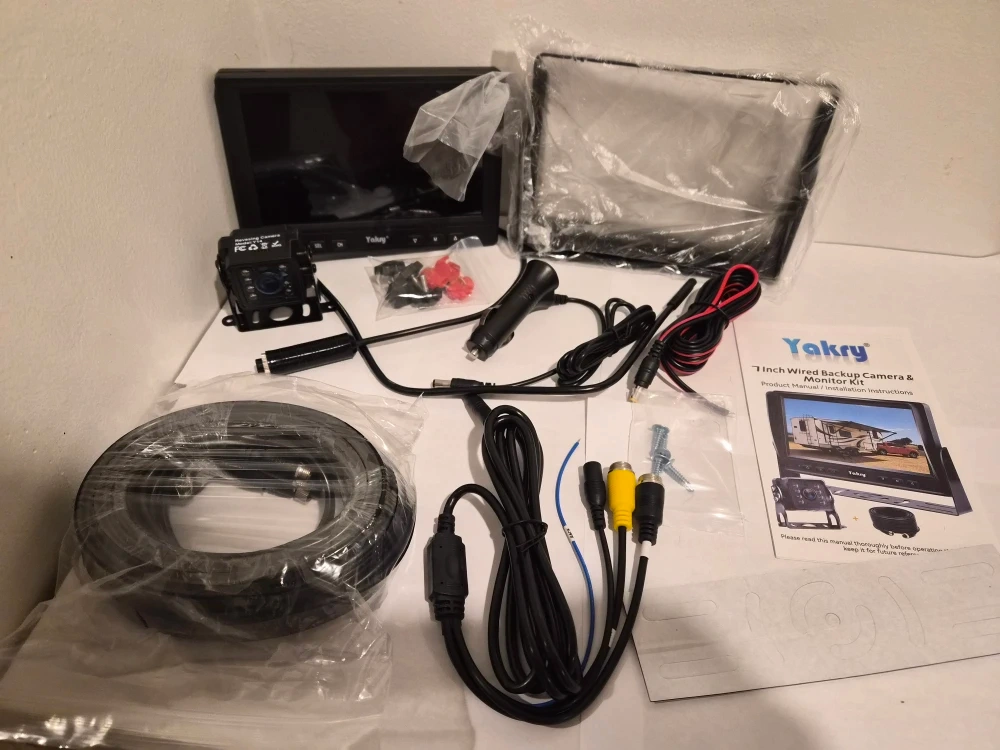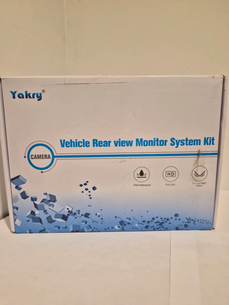 Selling a brand new Yakry 7 inch wired backup camera and monitor kit! It comes with all the components and accessories in the original box. This is a vehicle rear view monitor system kit, waterproof, and has 0.1 Lux night vision.