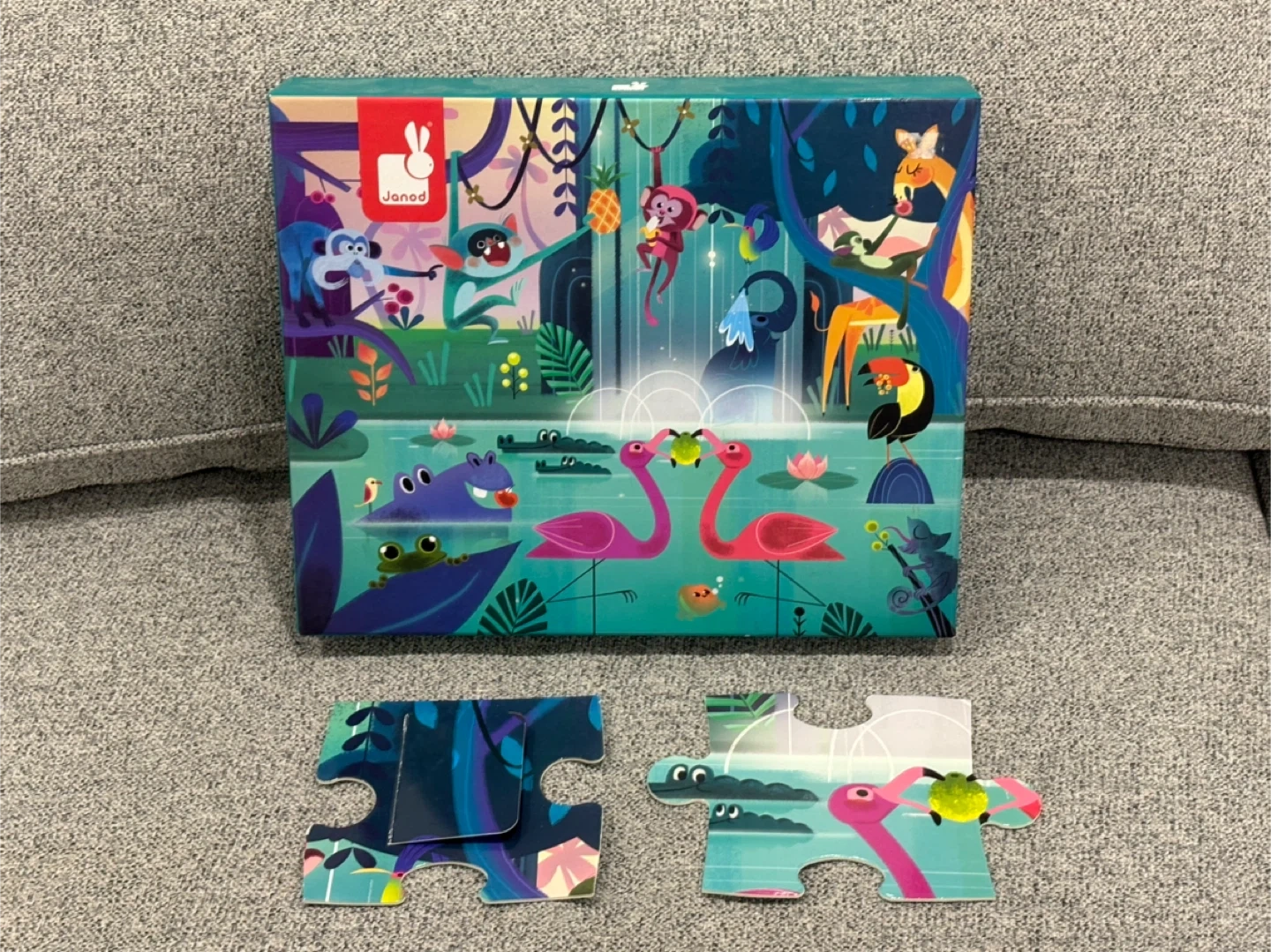 Selling a Janod jungle-themed puzzle! It's in great shape and ready for a new home. The box is included, so it's easy to store or gift. Great for kids who love animals and puzzles