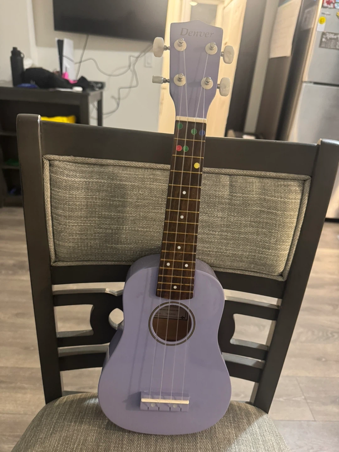 Selling a Denver DUKE PPL ukulele! It's a lovely purple colour and comes with a case, making it easy to carry around. Perfect for beginners or anyone looking to add a fun instrument to their collection