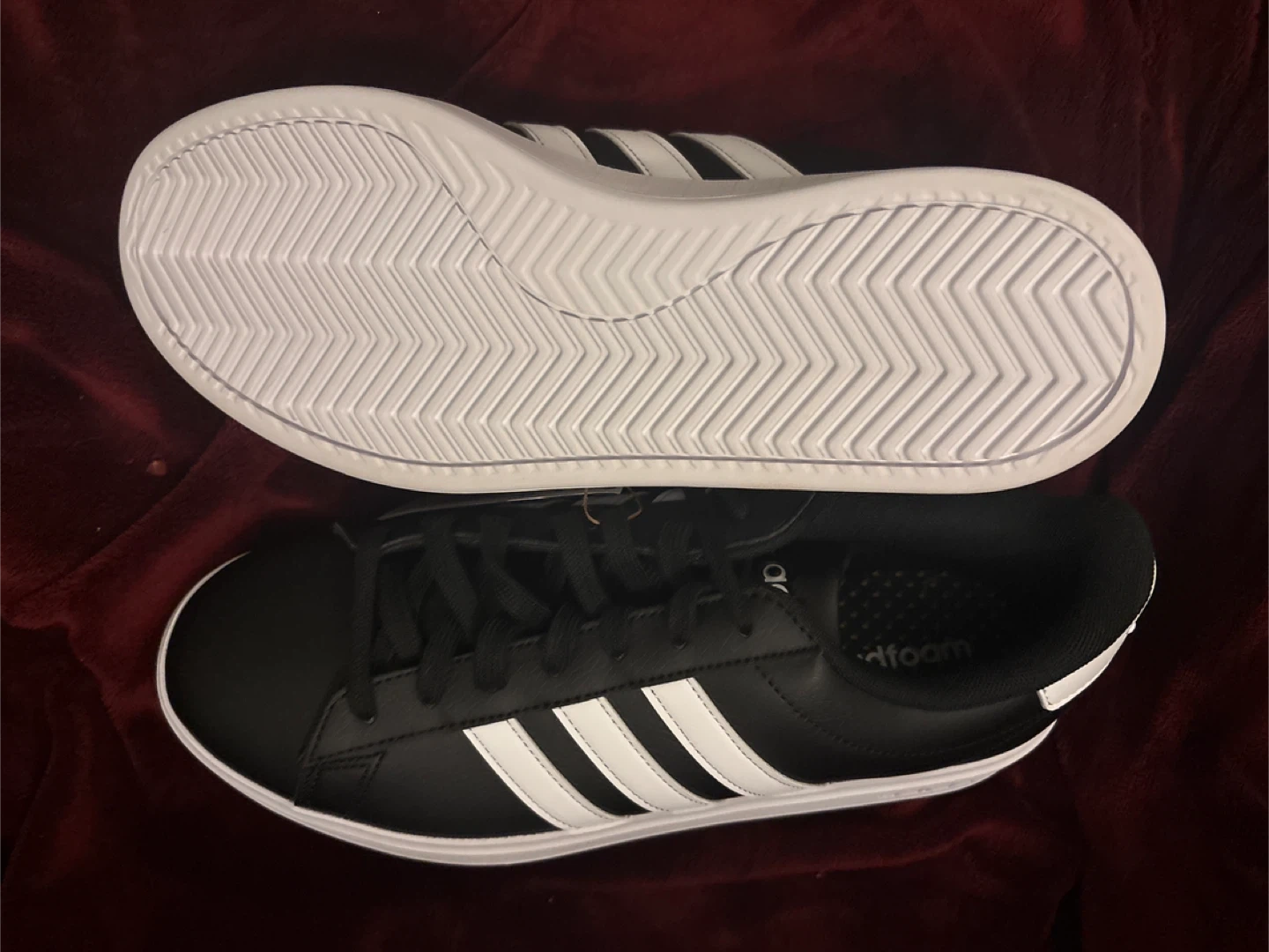 These Adidas Grand Court 2 Base sneakers are NEW. They feature the classic Adidas three-stripe design in white against a sleek black background. They have cloudfoam comfort and a durable rubber outsole. Perfect for everyday wear!