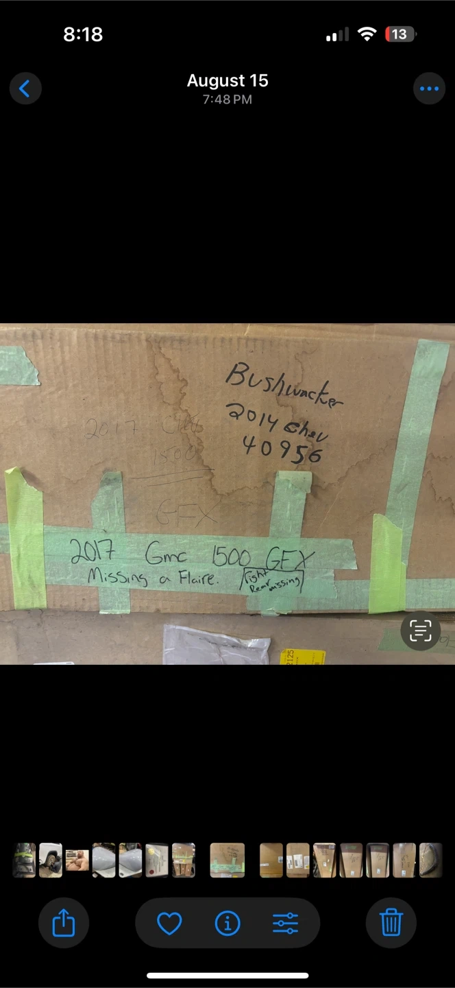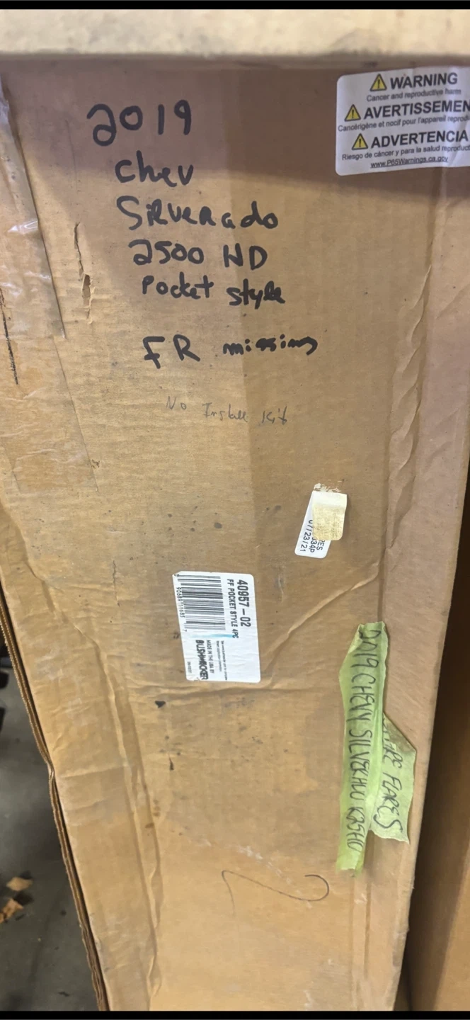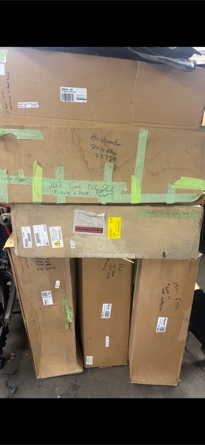 New GM ,Ford , Dodge Ram wheel opening/ wheel flares kits . Six kits in total , most kits one missing. Factory parts and aftermarket bushwhacker kits. See photos for part number and descriptions . $40 for each kit and $130 for all of them , package deal . Automotive Wright Off car rebuilder or Body shop.