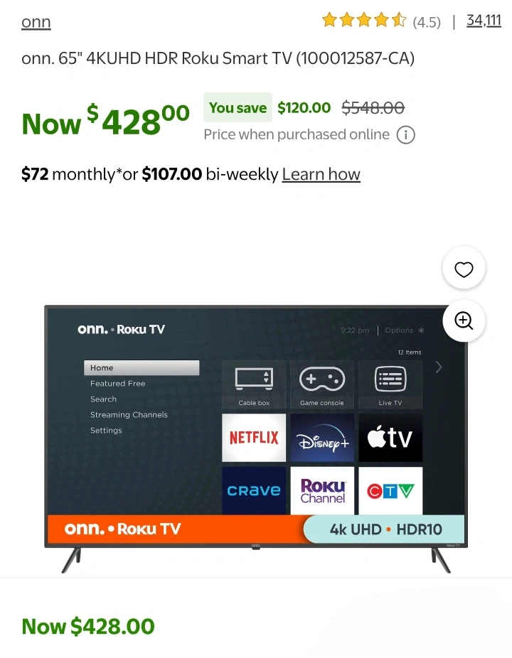 These are new open box onn. 65" 4KUHD HDR Roku Smart TV