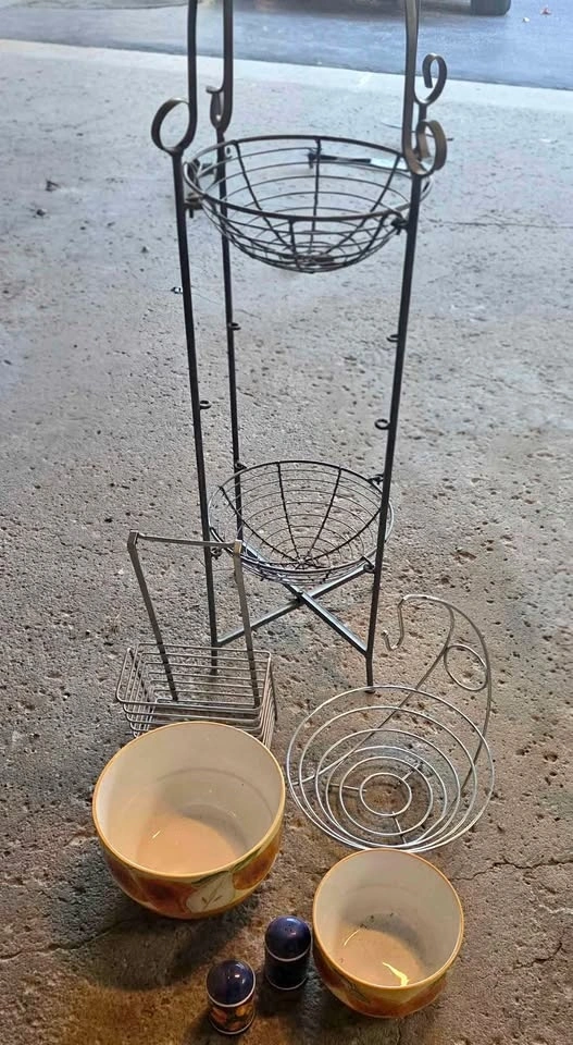 1 tall metal wire stand with basket