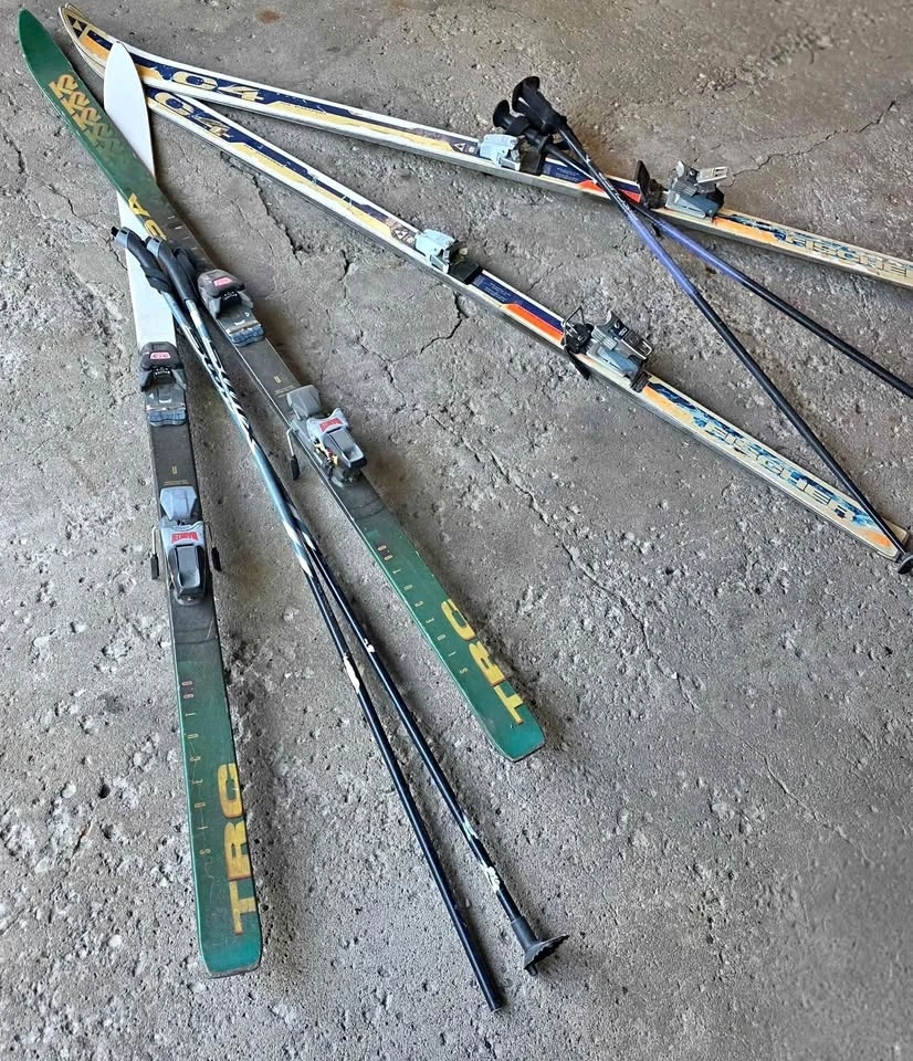 Selling two sets of classic cross-country skis with poles. Fischer skis with poles (blue/orange design, bindings included) Trac 9.0 skis with poles (green/black design, bindings included) Both sets are in used condition but solid and functional. Great for beginners, casual use, or someone looking for a vintage/retro ski setup. $70 each set or $120 for both.