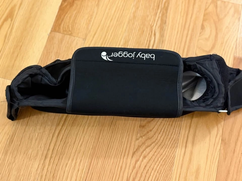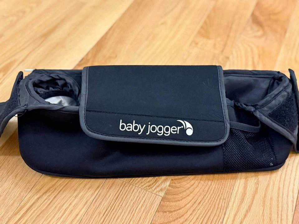An organizer that attaches to the store or handle via velcro. It holds two drink drinks in a middle compartment that has a flap that you can open and close.