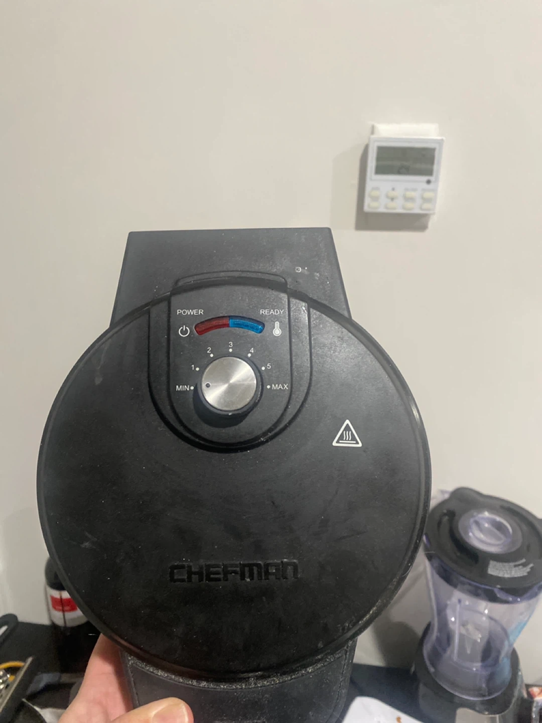 Good-condition Chefman waffle maker — makes thick, fluffy Belgian-style waffles with nice deep pockets, perfect for brunch, pancakes or weekend breakfasts. Easy to clean nonstick plates, adjustable browning dial so you can customise crispiness, and compact enough for most kitchens.
