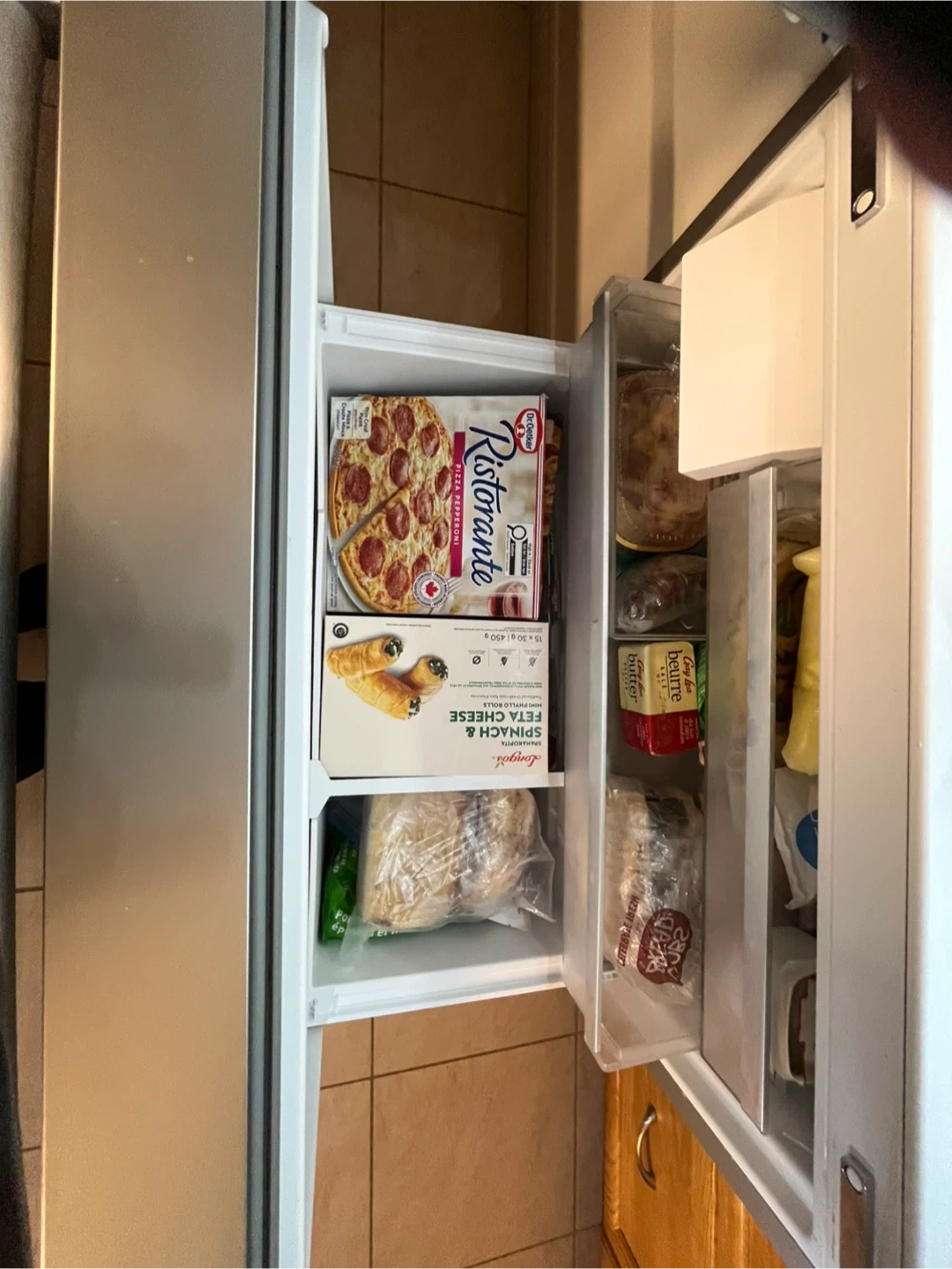 Selling a Bosch stainless steel refrigerator. It's in great condition and ready for a new home! It features a water dispenser inside.