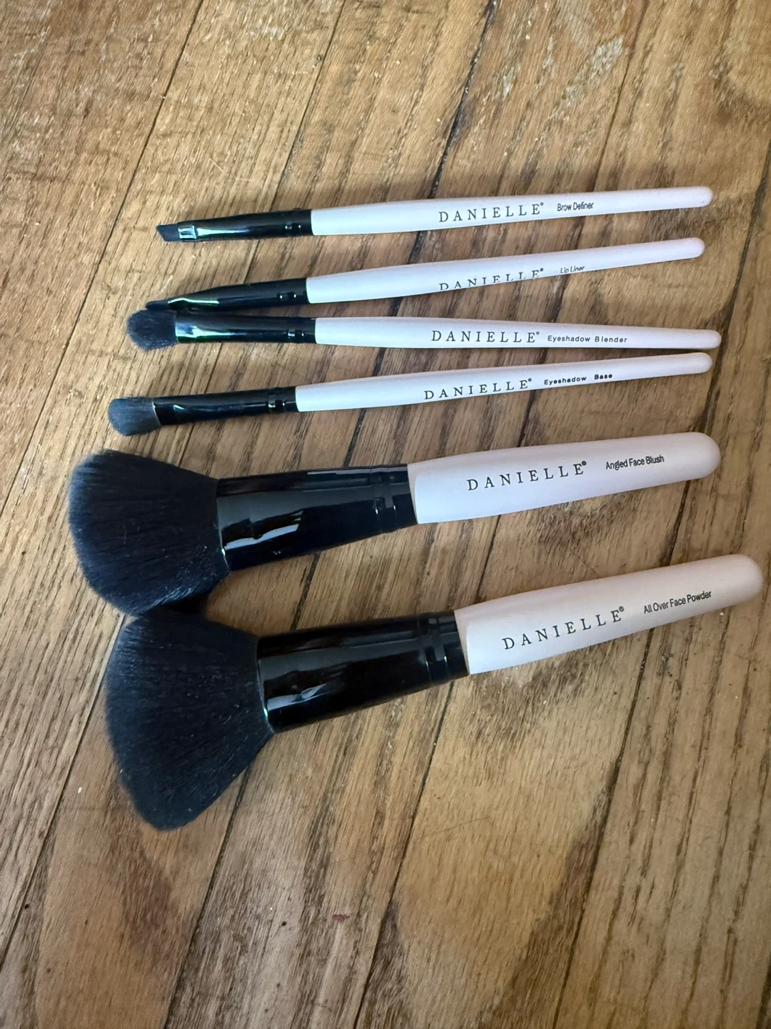 Selling a set of Danielle makeup brushes! This set includes: - Brow Definer brush - Lip Liner brush - Eyeshadow Blender brush - Eyeshadow Base brush - Angled Face Blush brush - All Over Face Powder brush