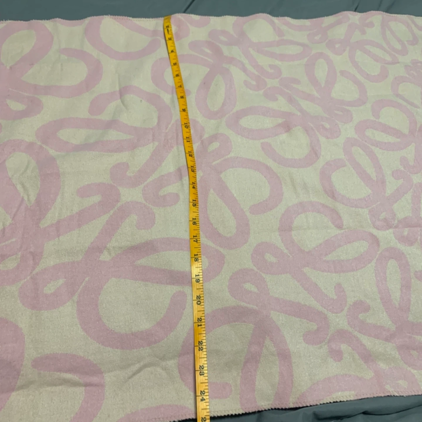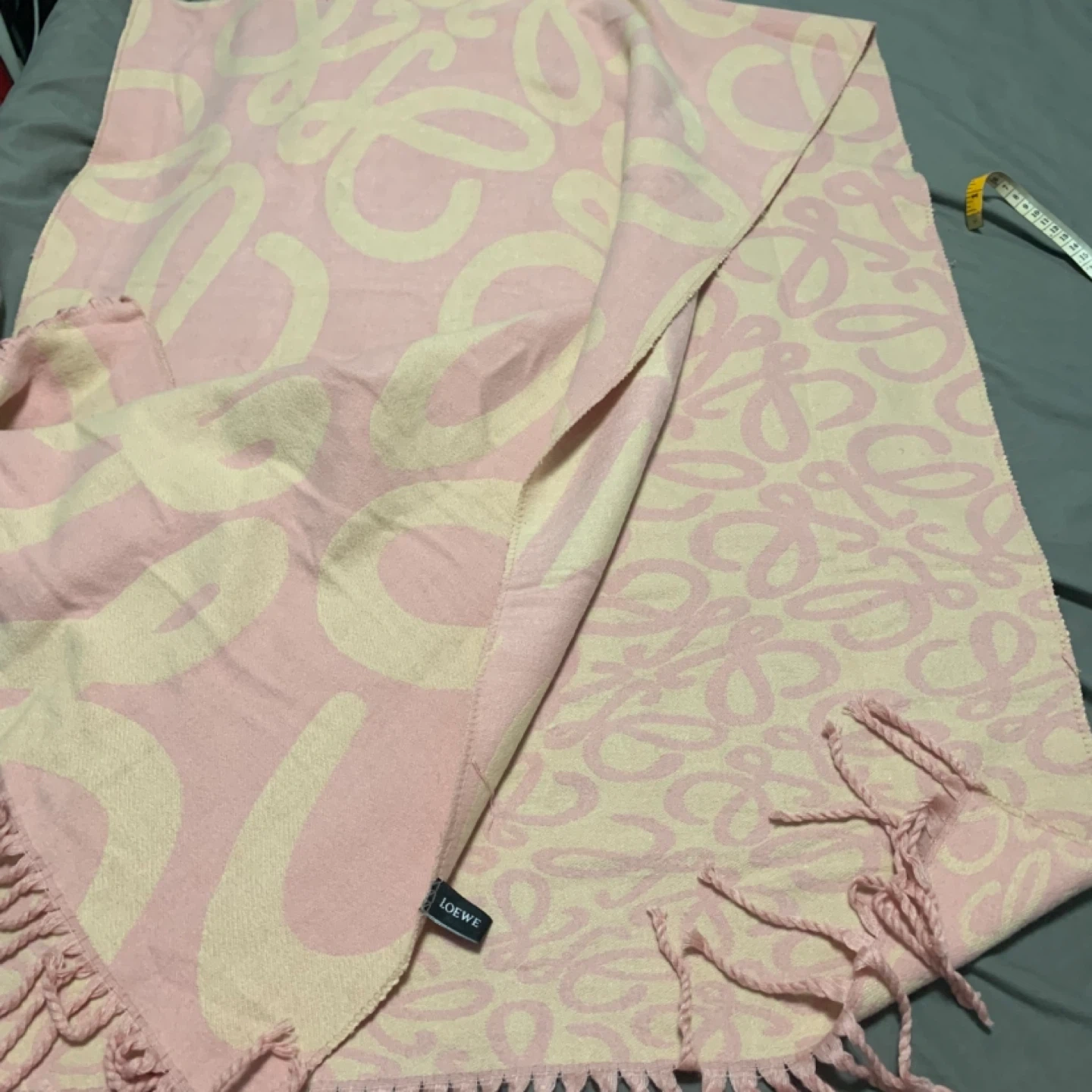 Selling a Loewe scarf made of 65% cashmere and 35% silk! It's a lovely pink colour with the Loewe logo pattern throughout. There are some signs of wear, as shown in the photos.