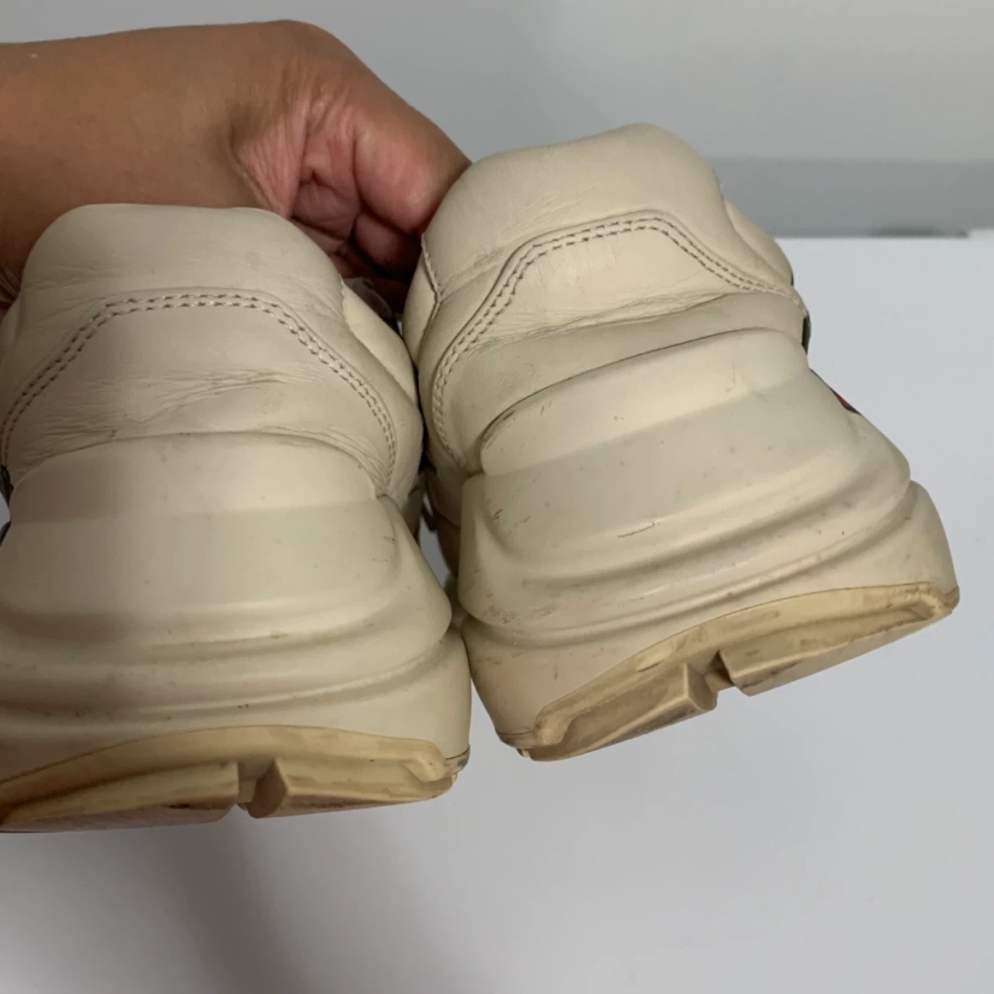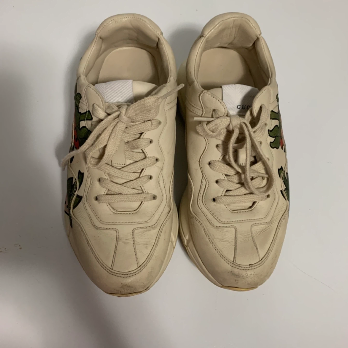 Selling a pair of Gucci Ace sneakers with a strawberry design. They're in good condition, with some signs of wear as pictured. These are a stylish and unique addition to any wardrobe!