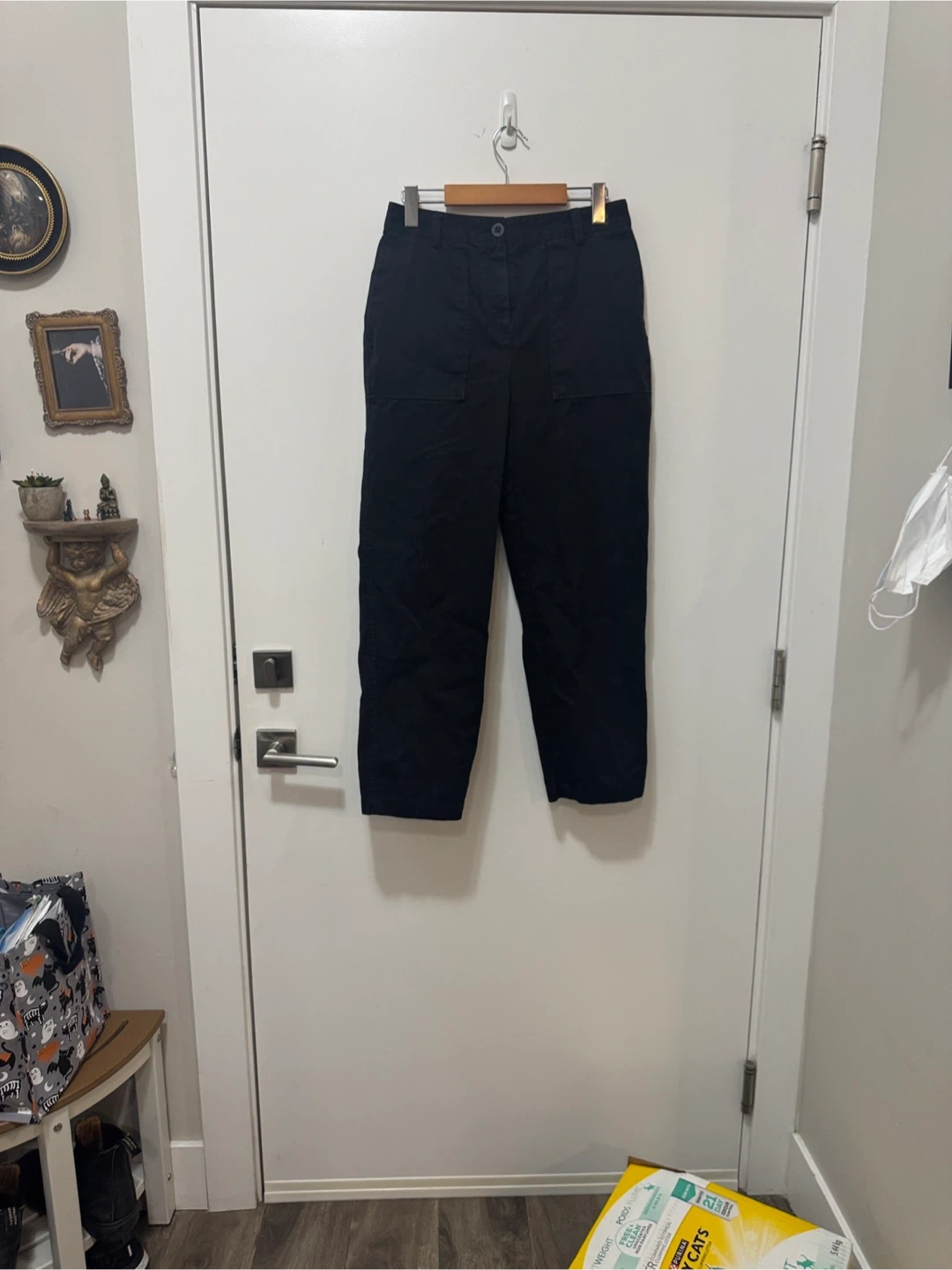 Stylish black pants. Sleek design. Perfect for any occasion. 100% cotton l. Faded from wearing & wash. No holes or stains. Fit smaller see measurements