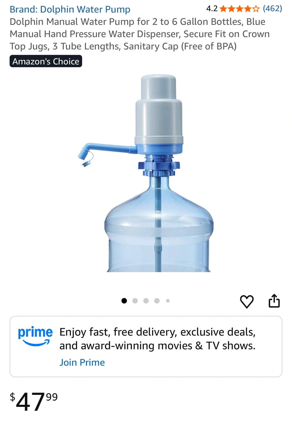 It's a manual pump designed for bottled water. This is a BPA-free pump that's easy to use and requires no electricity or batteries.