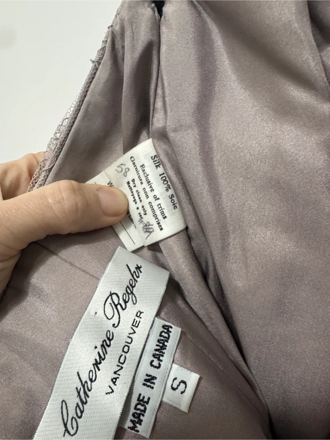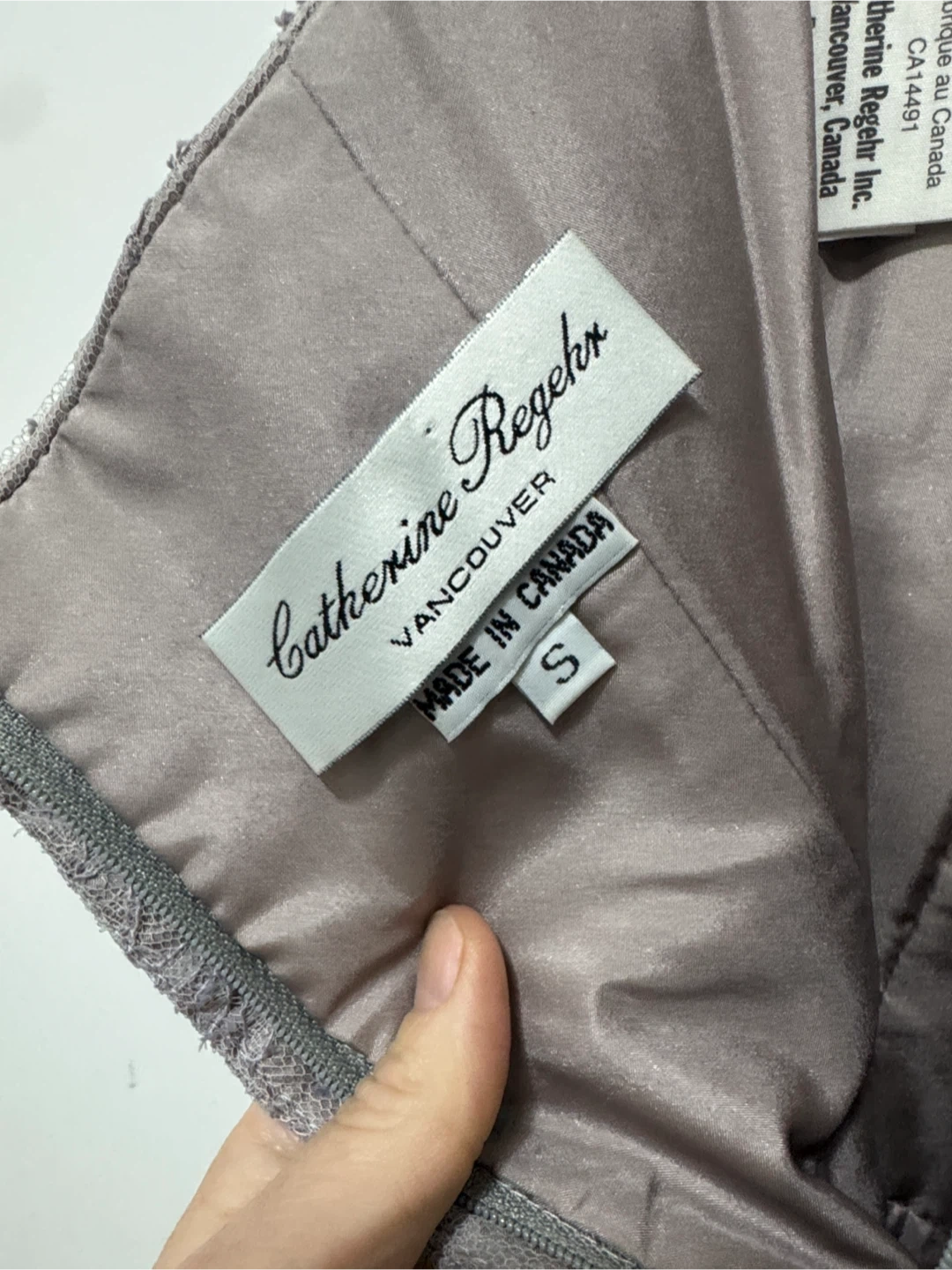 Catherine regehr grey lace & silk strapless dress. Small