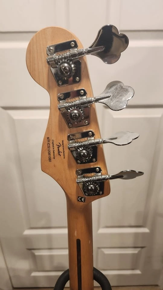 This bass was made in Indonesia in 2012. It has precision+jazz pickups, maple neck, laurel fretboard, and vol/vol/tone controls.