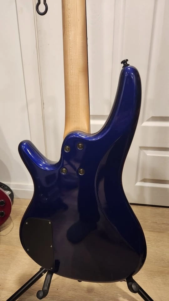 This Ibanez SR400 active bass features DXJ P/J pickups and 5 control knobs for detailed tone shaping. It has maple neck, rosewood fretboard with 24 frets, black electronics, and 3-band EQ controls.