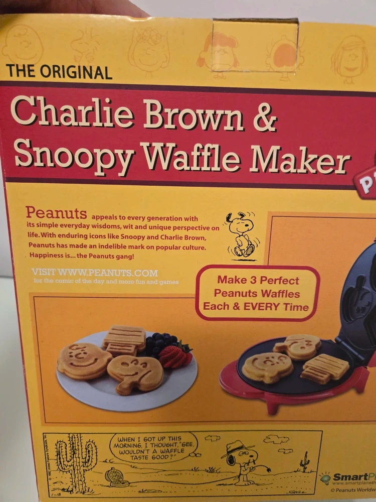 Buy & SellCharlie Brown & Snoopy Waffle Maker - PeanutsCharlie Brown & Snoopy Waffle Maker - Peanuts$40Brand New never used. Charlie Brown & Snoopy Waffle Maker! It makes 3 Peanuts waffles. ConditionNewWHERE TO MEETCheck LocationView MapSELLERShopaholicBrentwood100 reviews0 chats·1 favorites·5 views