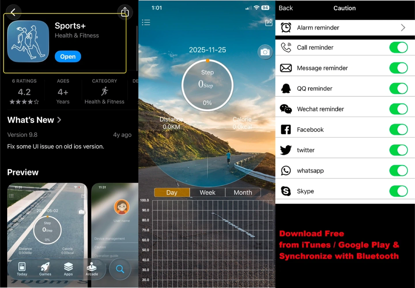 Synchronize with Sports+ Apps (Free Download from iTiunes or Google Play)