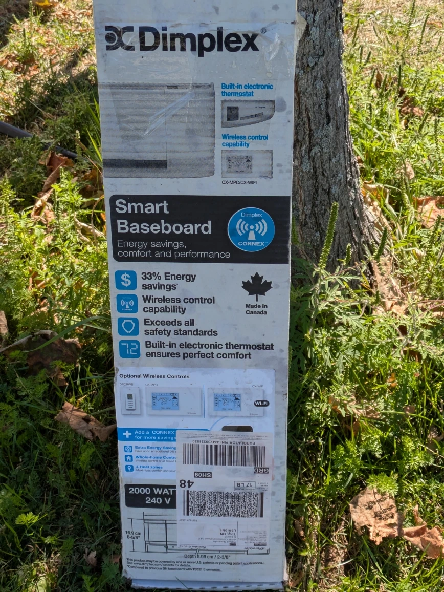 Selling a Dimplex Smart Baseboard Heater. It's a 2000 Watt, 240V heater with built-in electronic thermostat and wireless control capability. It's designed for energy savings, comfort, and performance. Made in Canada