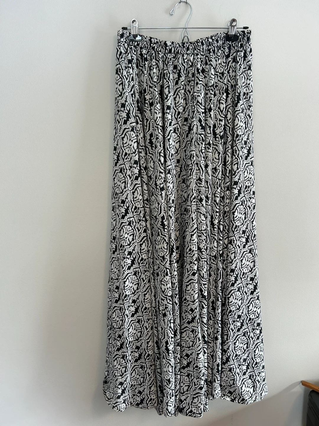 Magic brand. Large flowey maxi skirt, so much fabric would be great for twirling. Lightweight. Black & white paisley like print. Size medium. Brand new condition