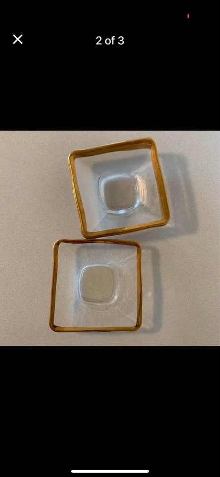 Vintage MCM gold rimmed 6” glass dessert plates. Set of 4. No chips, no cracks. Excellent condition. Gold still solid. Pick up in the Wolseley area of Winnipeg
