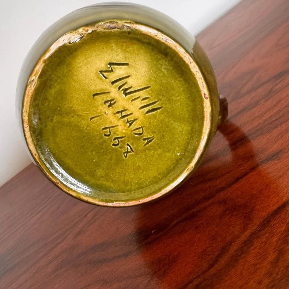 Vintage MCM Elwill Pottery of Canada pitcher #668. Brown and green drip glaze. Circa 1960-70. Excellent condition, no chips, cracks or crazing. 8” tall, 6” wide (including handle). Pick up in the Wolseley area of Winnipeg.
