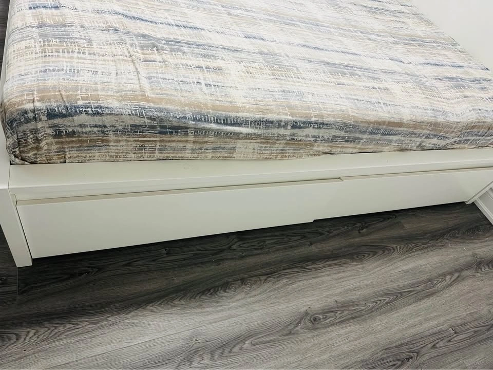 Selling a well-kept IKEA bed frame with 4 large pull-out storage drawers — perfect for keeping clothes, bedding, or essentials organized.