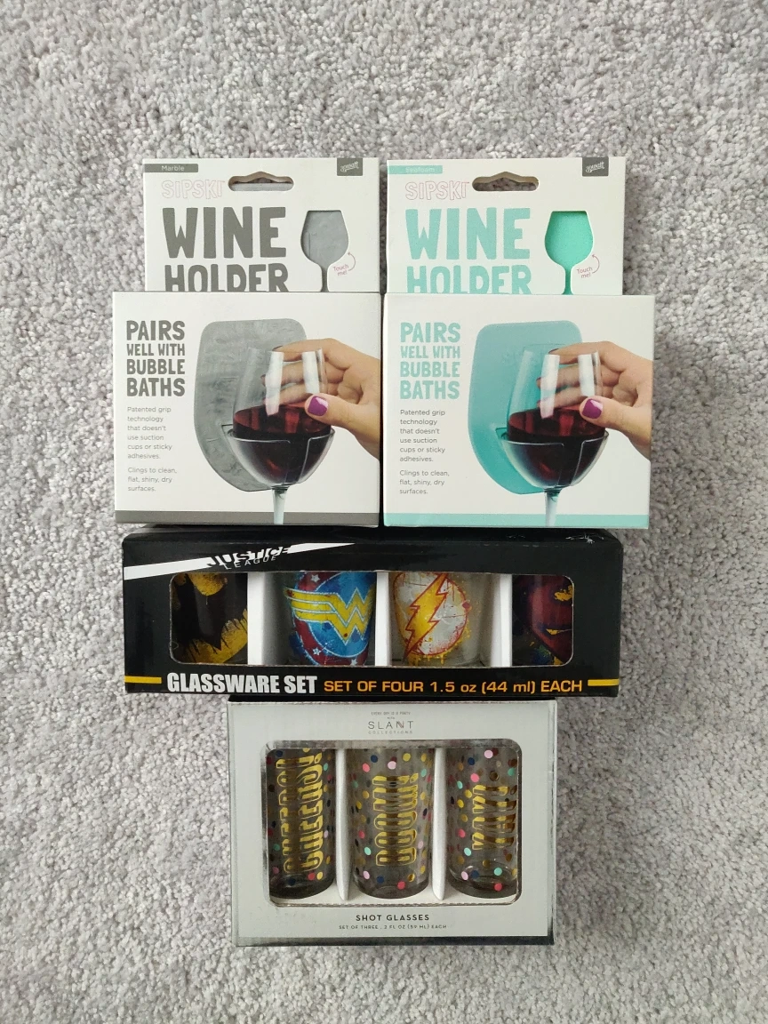 Selling wine holders and shot glasses. Each item for $5 or take all for $15