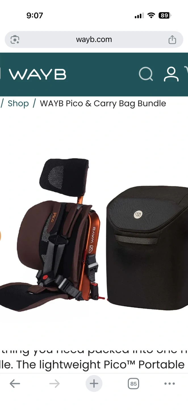 Selling a WAYB Pico portable car seat and carry bag bundle. The lightweight Pico is great for travel and everyday use. It's easy to install and super convenient to carry around. Perfect for families on the go!