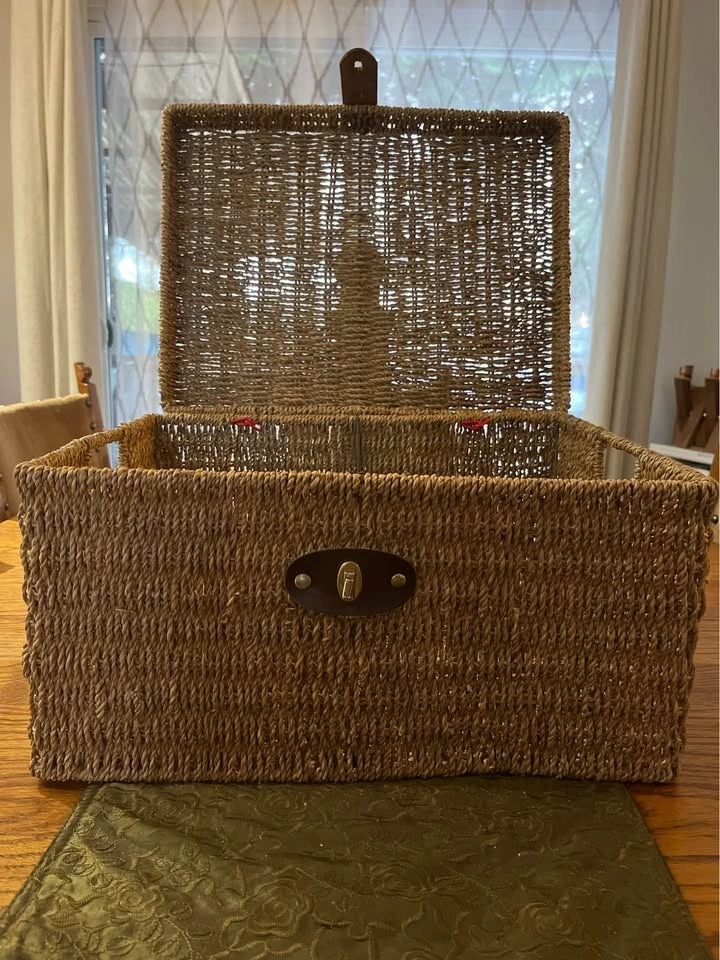 🧺 Woven Seagrass Storage Basket with Locking Lid