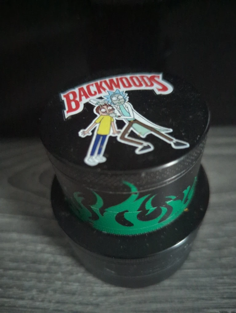 Two weed grinders. OWO and a Backwoods Rick & Morty with green flames(includes scraper). Metal not plastic. 4 sections. $5 each