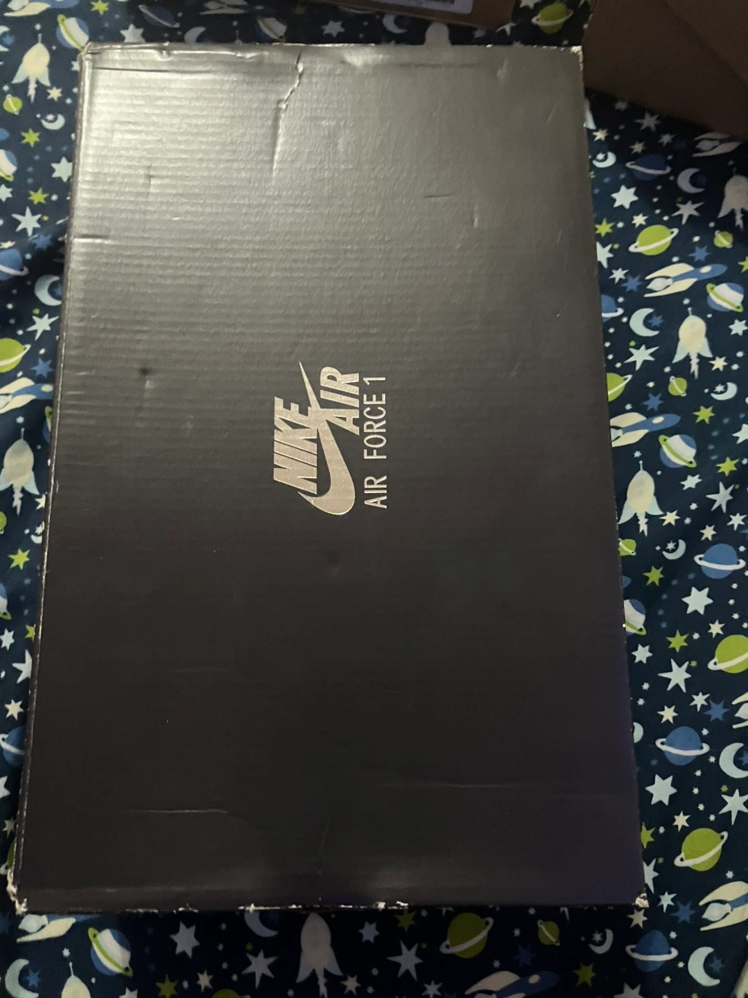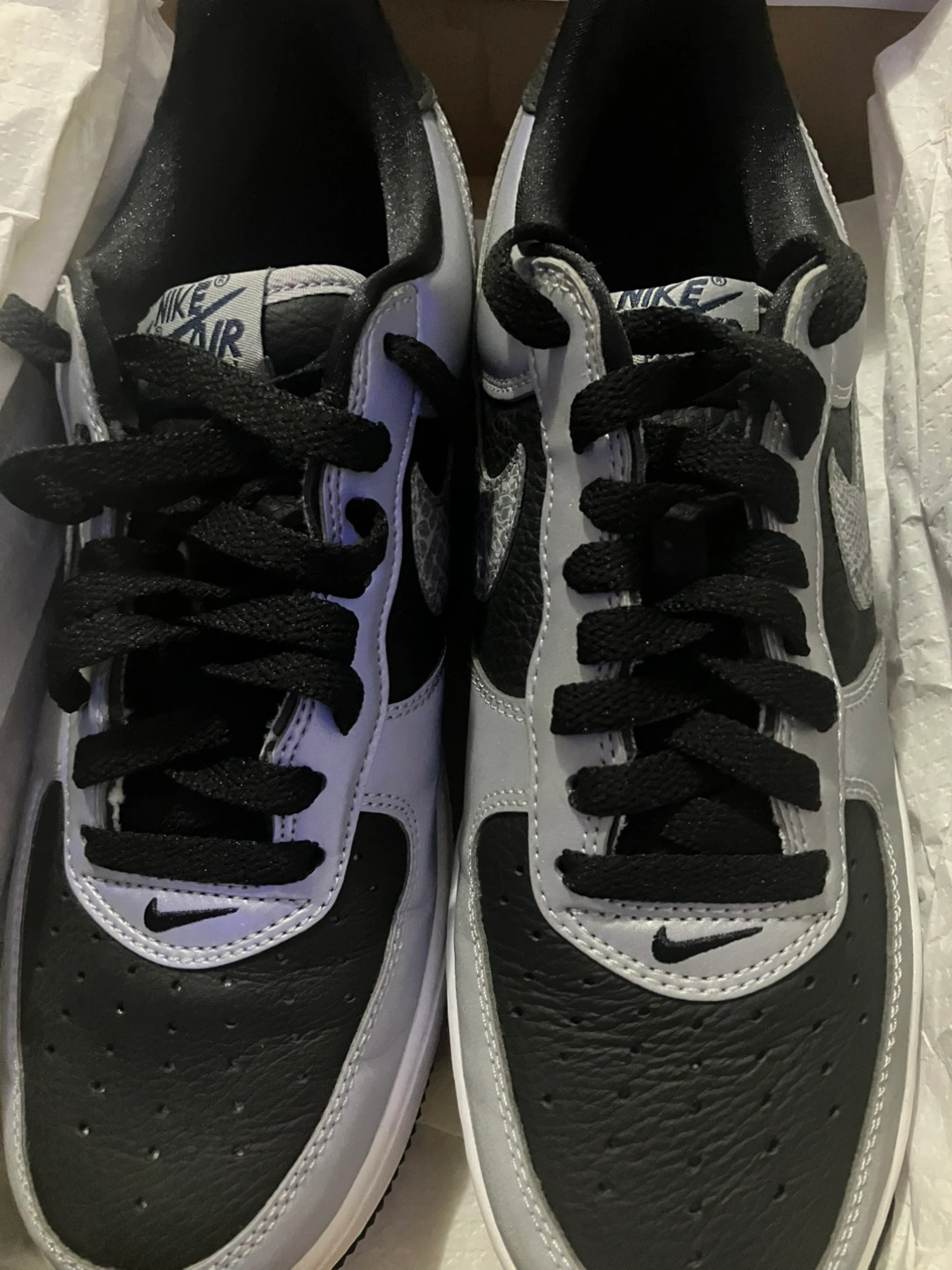 Selling a pair of Nike Air Force 1s in a sleek black and silver.Comes with the original box!