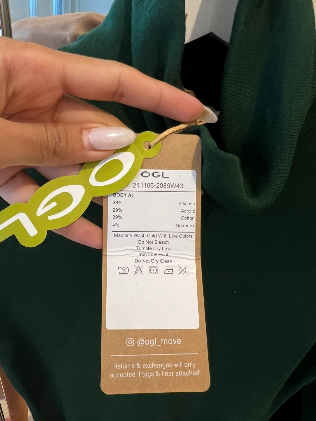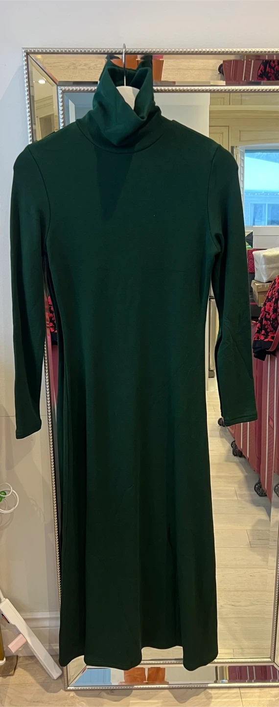 Selling a lovely OGL green turtleneck dress in size medium! It's made of a blend of materials: 38% Viscose, 29% Acrylic, 29% Cotton, and 4% Spandex. Perfect for a cozy and stylish look