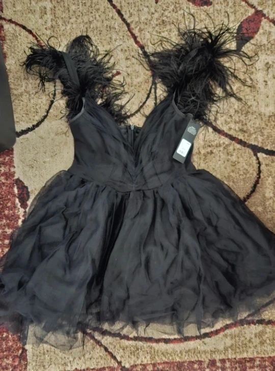 NBD Black Feather Mini Dress - New with Tags!